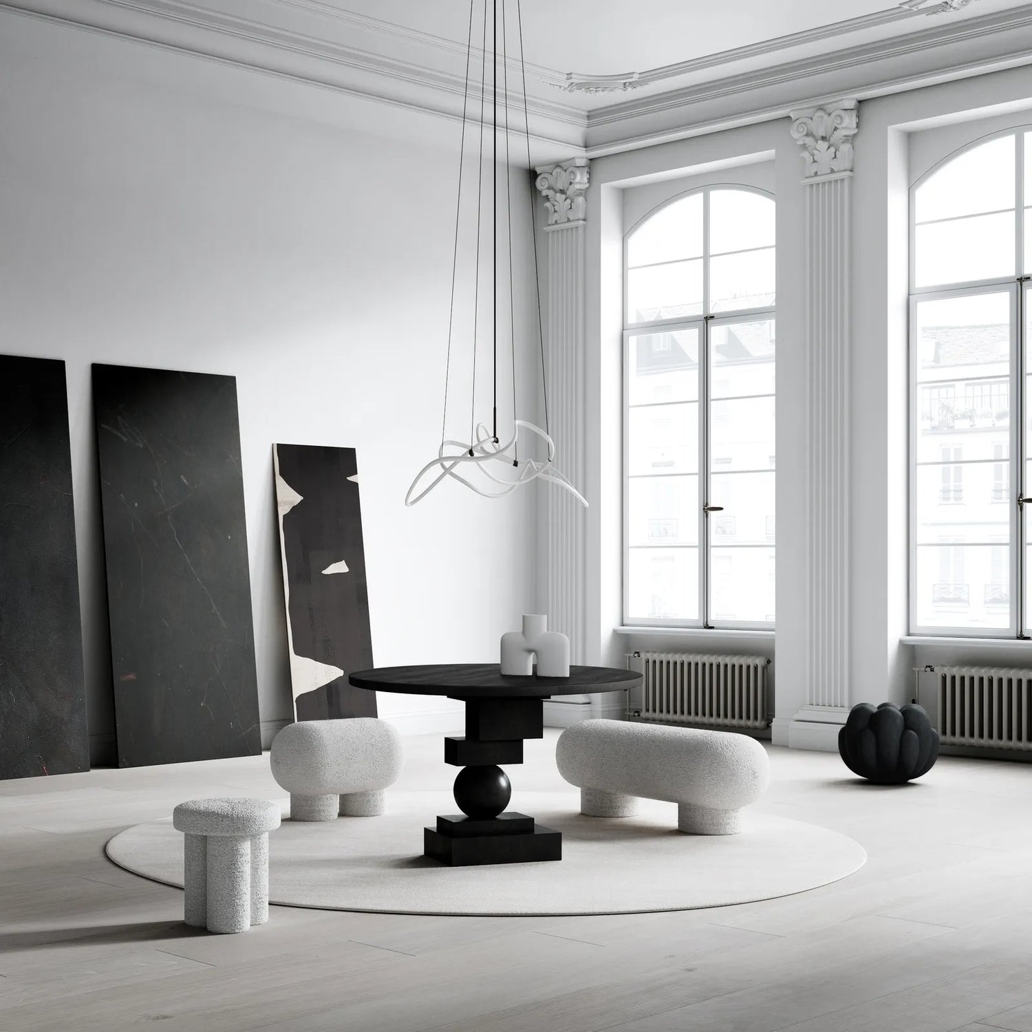 Table de salle à manger d'artiste en chêne, finition noir café, Ø120 cm est en rupture de stock et sera expédié dès qu’il sera de retour en stock.