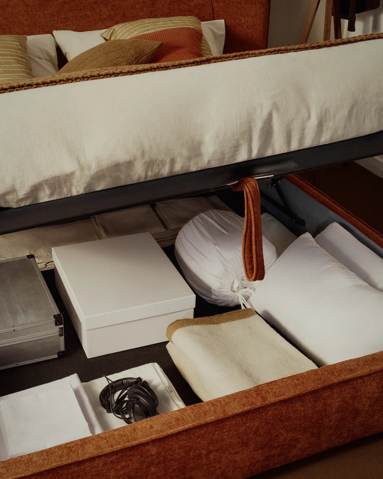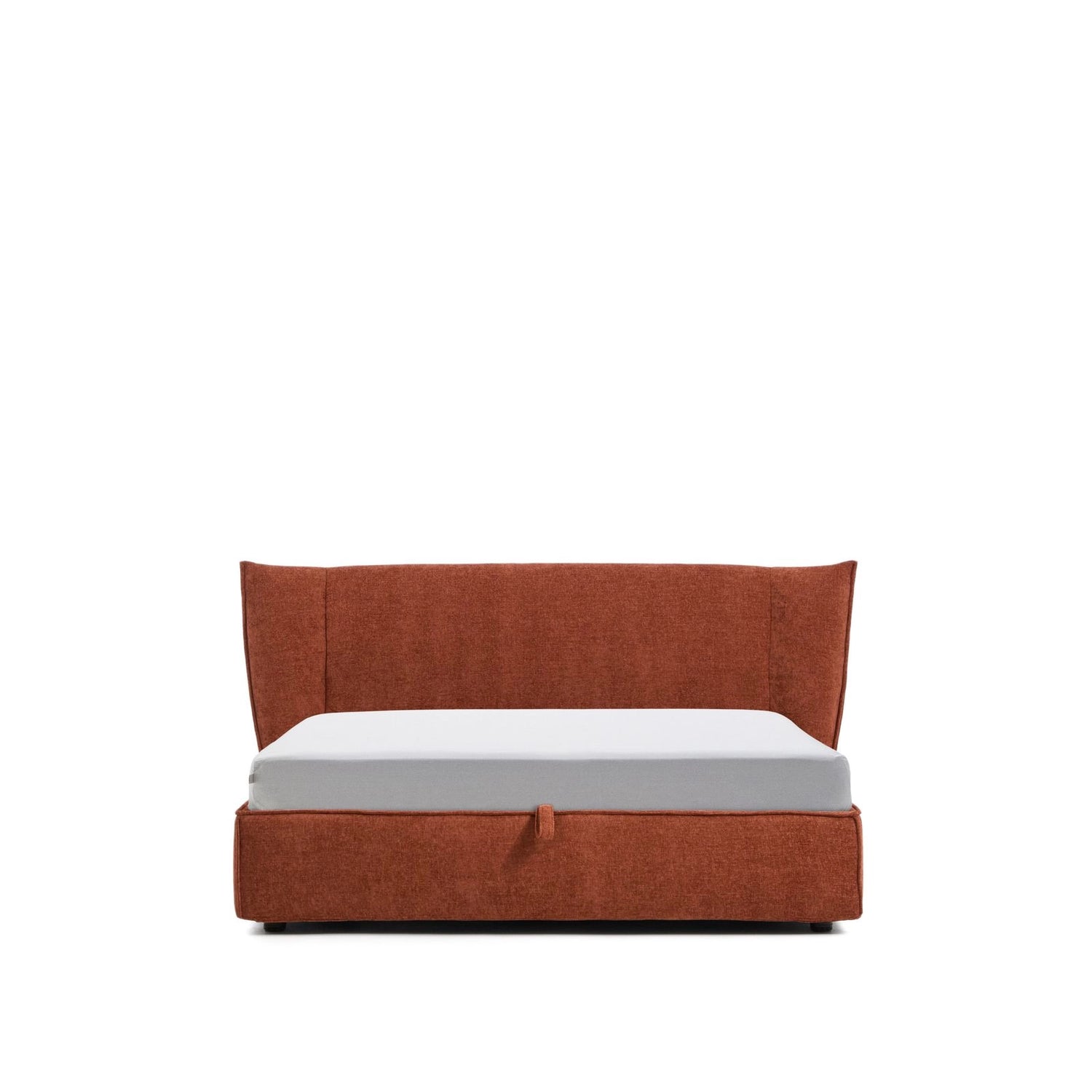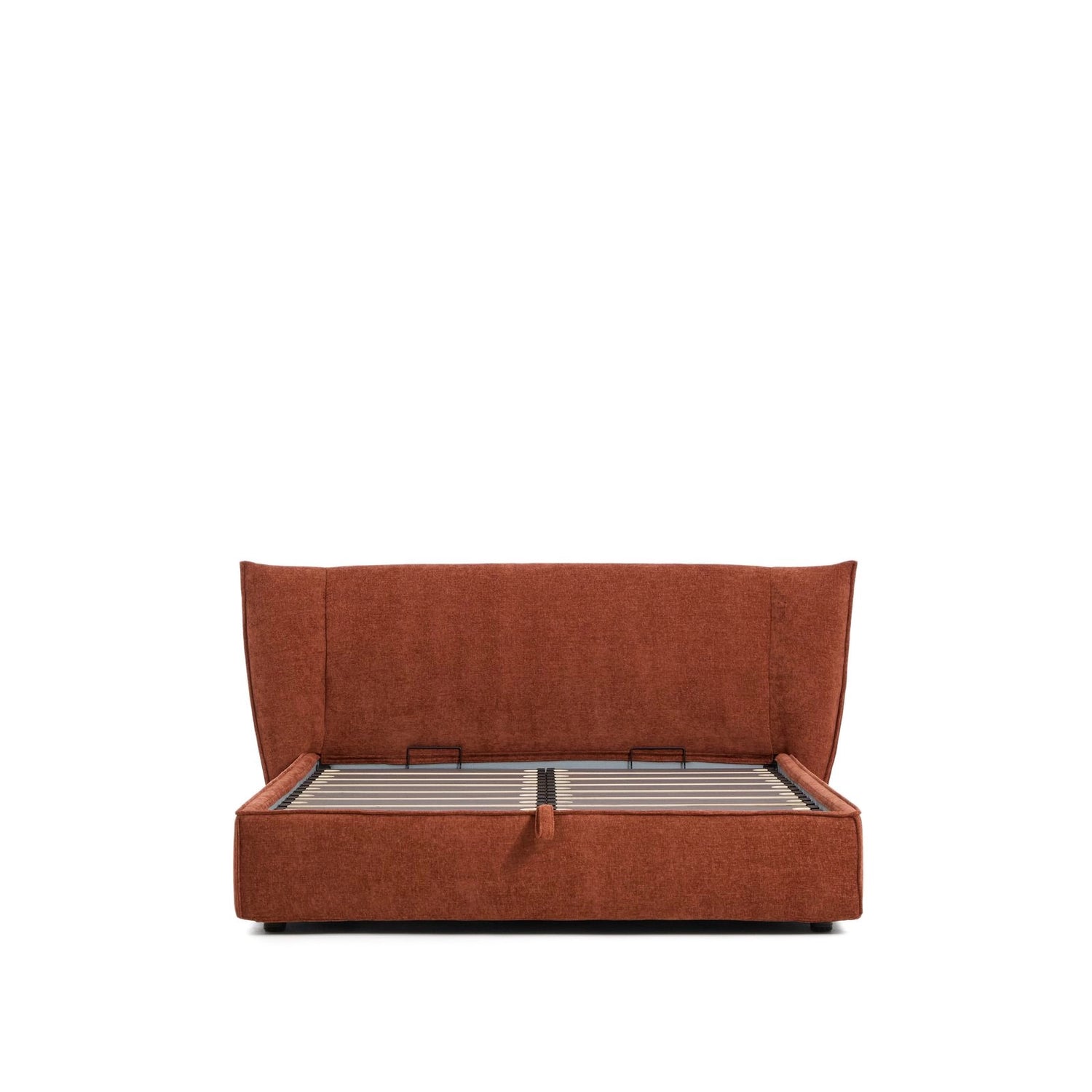 Lit Arvian avec housse amovible en chenille couleur terre cuite et sommier rabattable pour un matelas de 160 x 200 cm