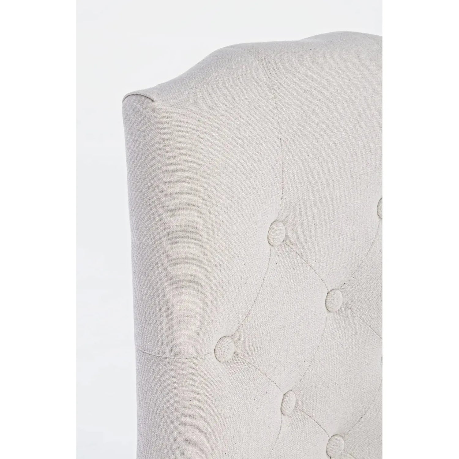Cadre en bois d'hévéa. Assise et dossier recouverts de tissu (40% polyester, 30% coton, 30% lin).