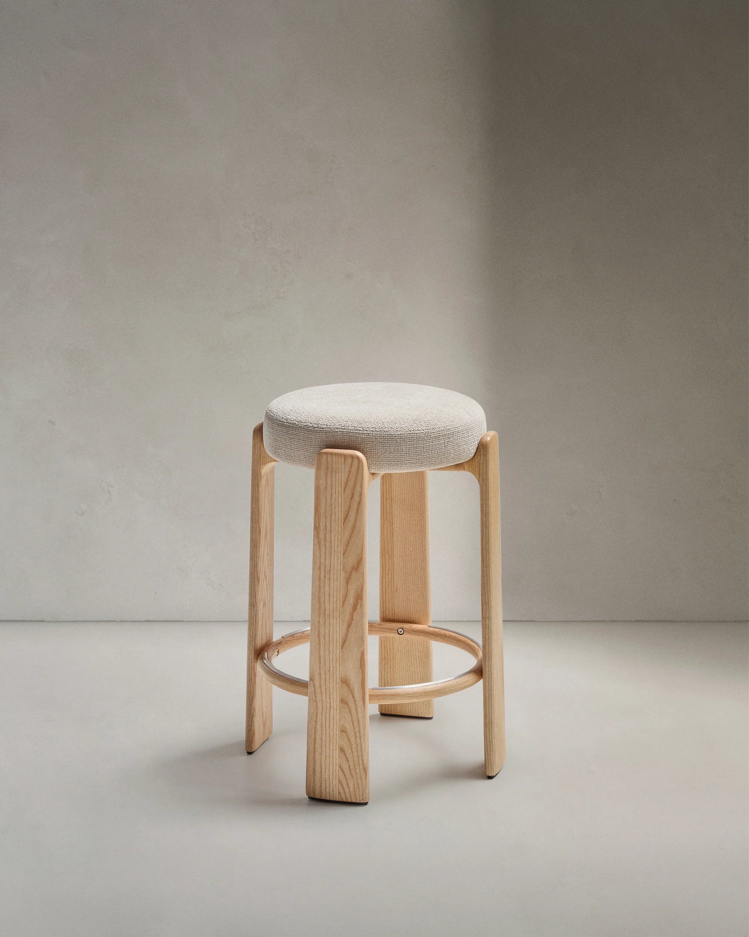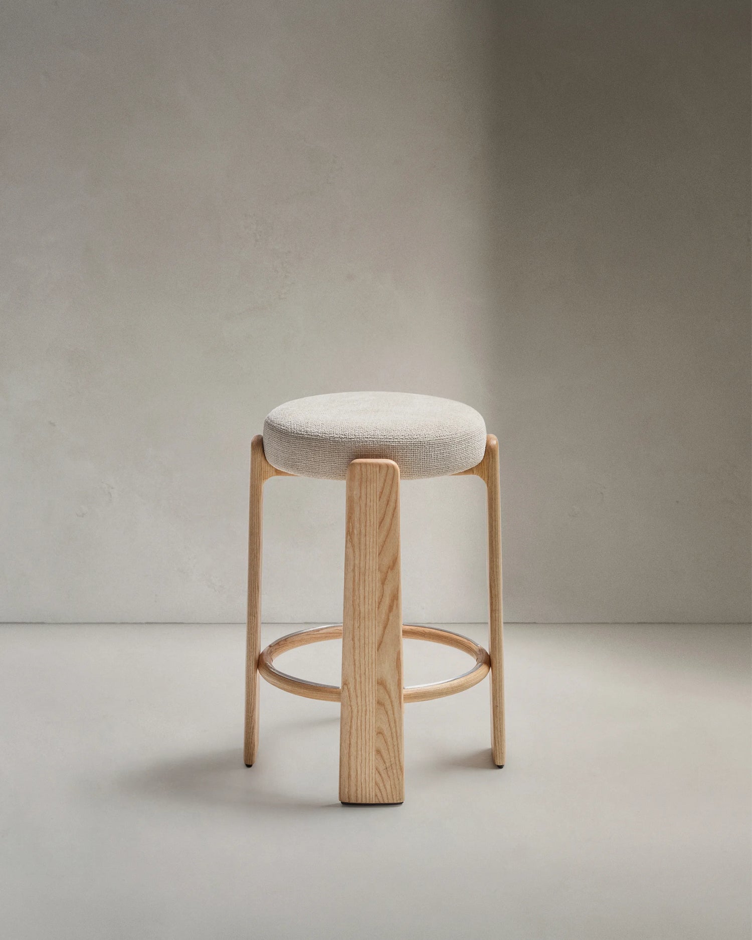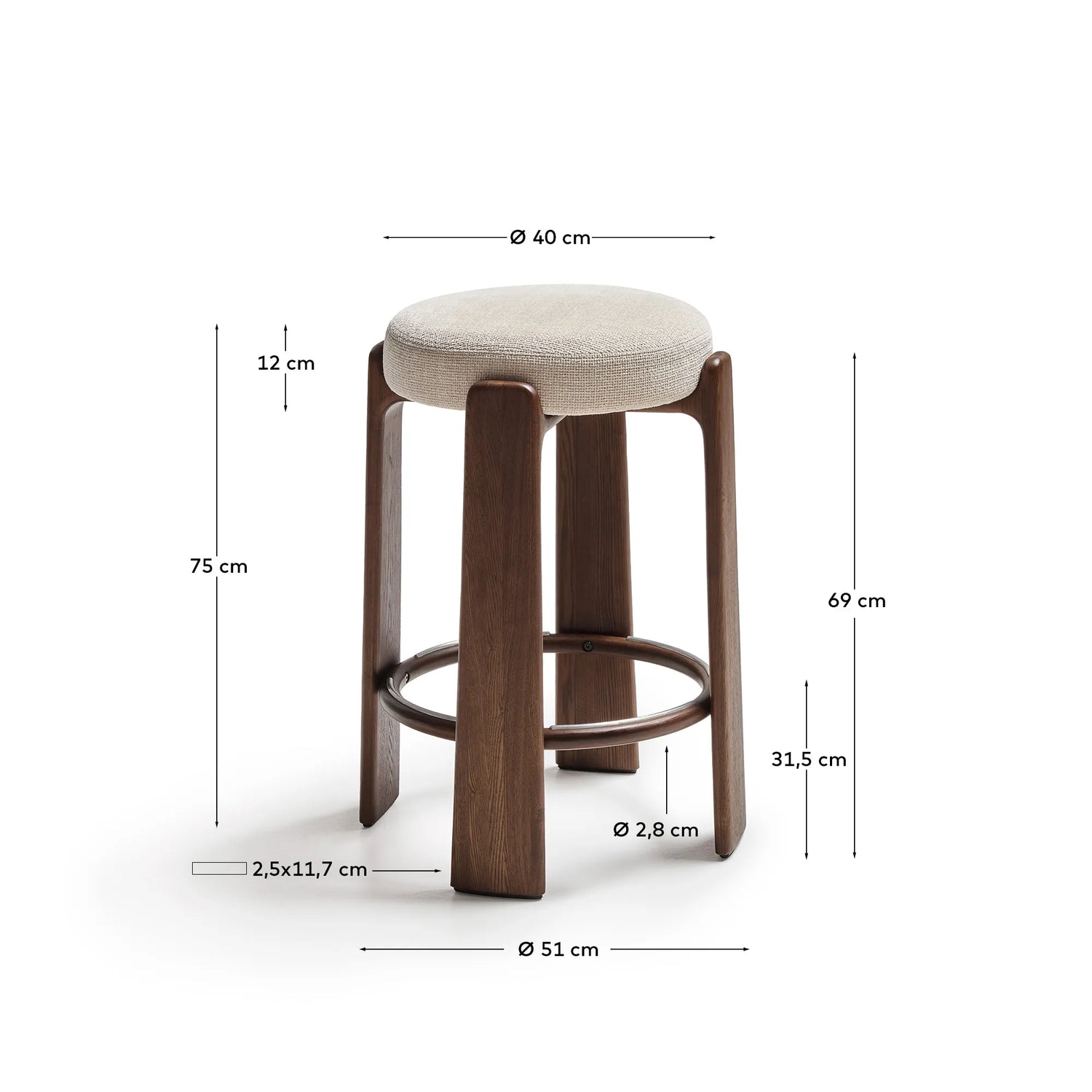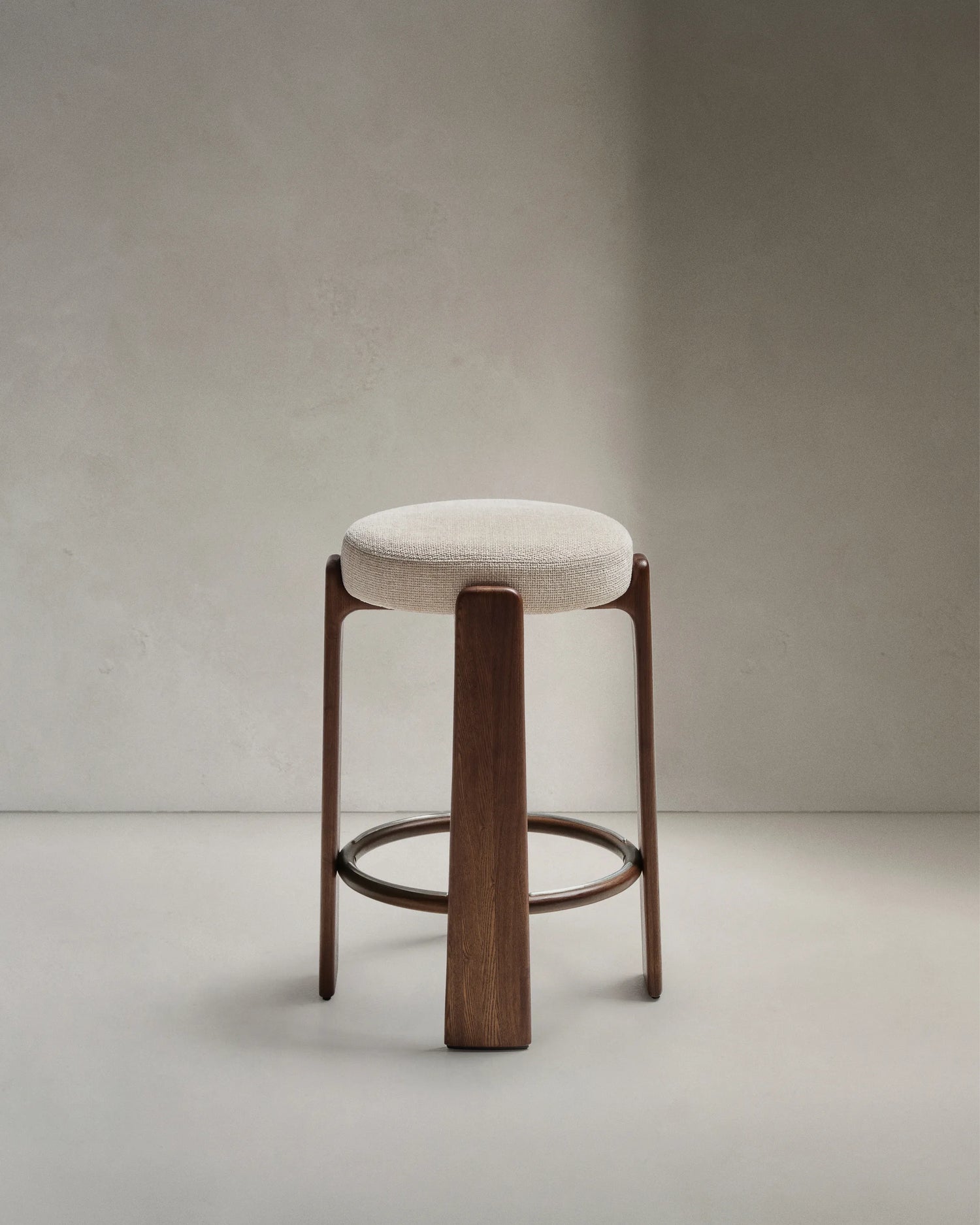 Tabouret en granit en chenille et bois de frêne massif de différentes couleurs, FSC 100%, 75 cm - Chenille beige, finition noyer est en rupture de stock et sera expédié dès qu’il sera de retour en stock.