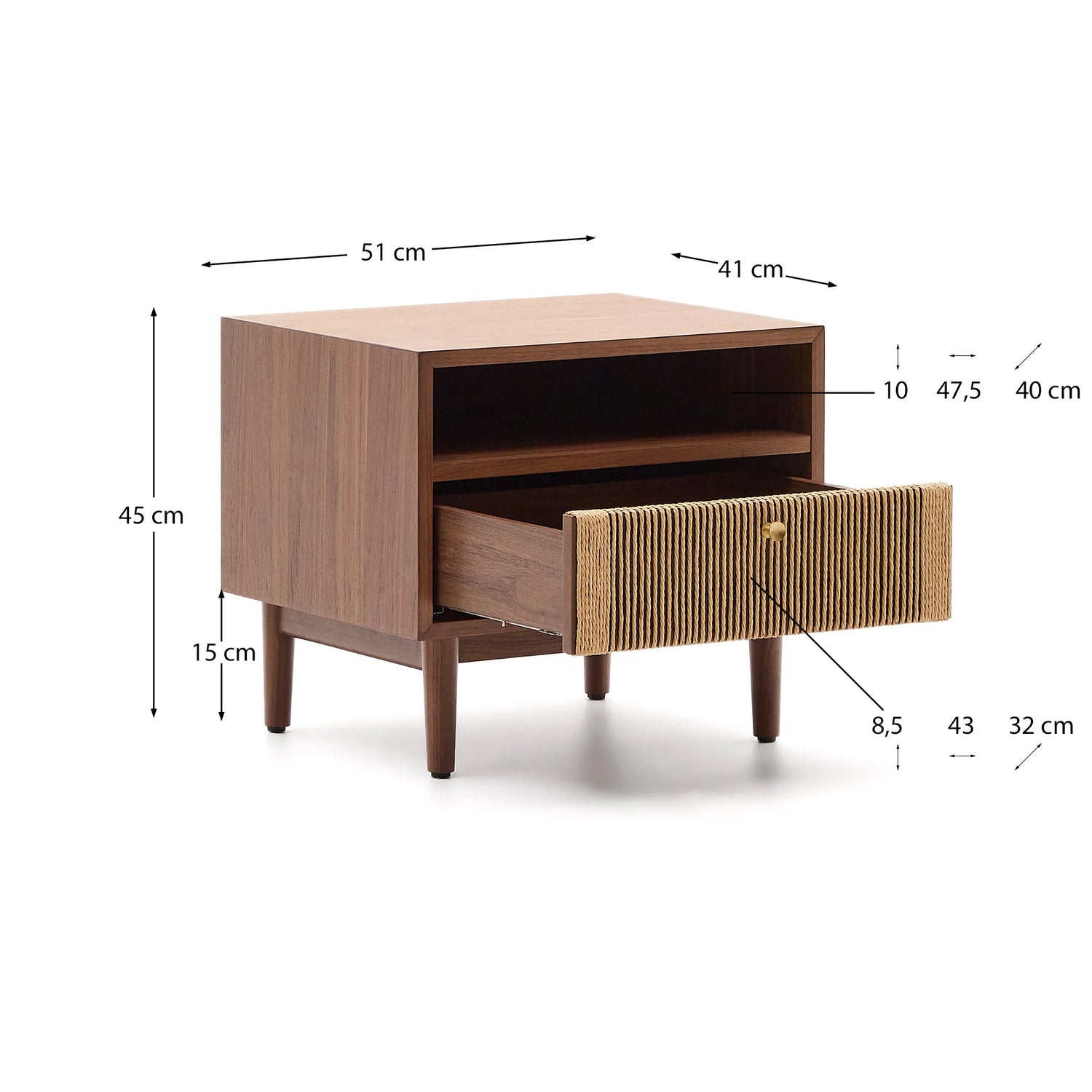 Avec son essence intemporelle, Elan allie la chaleur du bois de noyer à un design clair. Chaque pièce est une œuvre d'artisanat, avec ses détails en corde tissée à la main ajoutant une touche d'élégance et de rusticité à vos pièces.