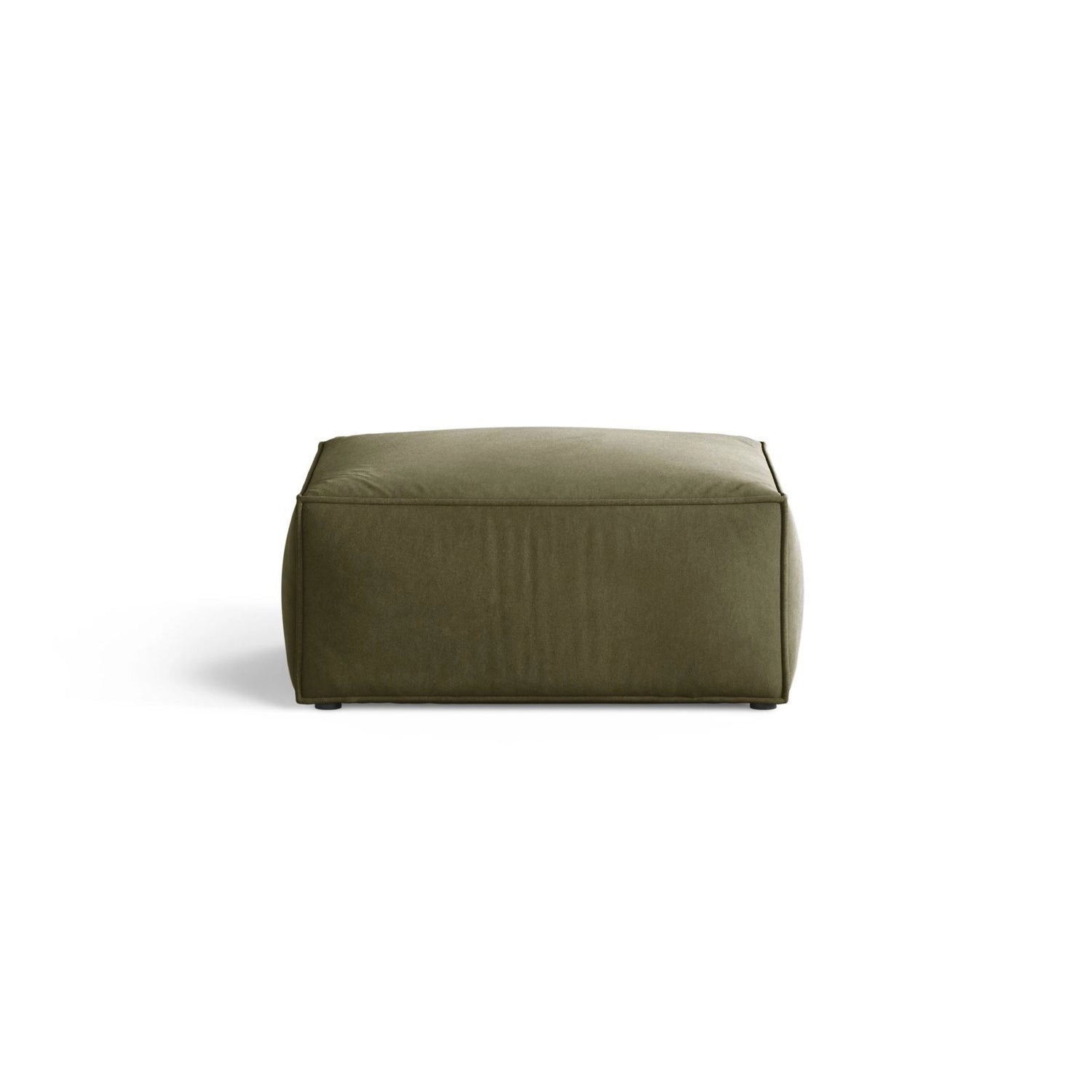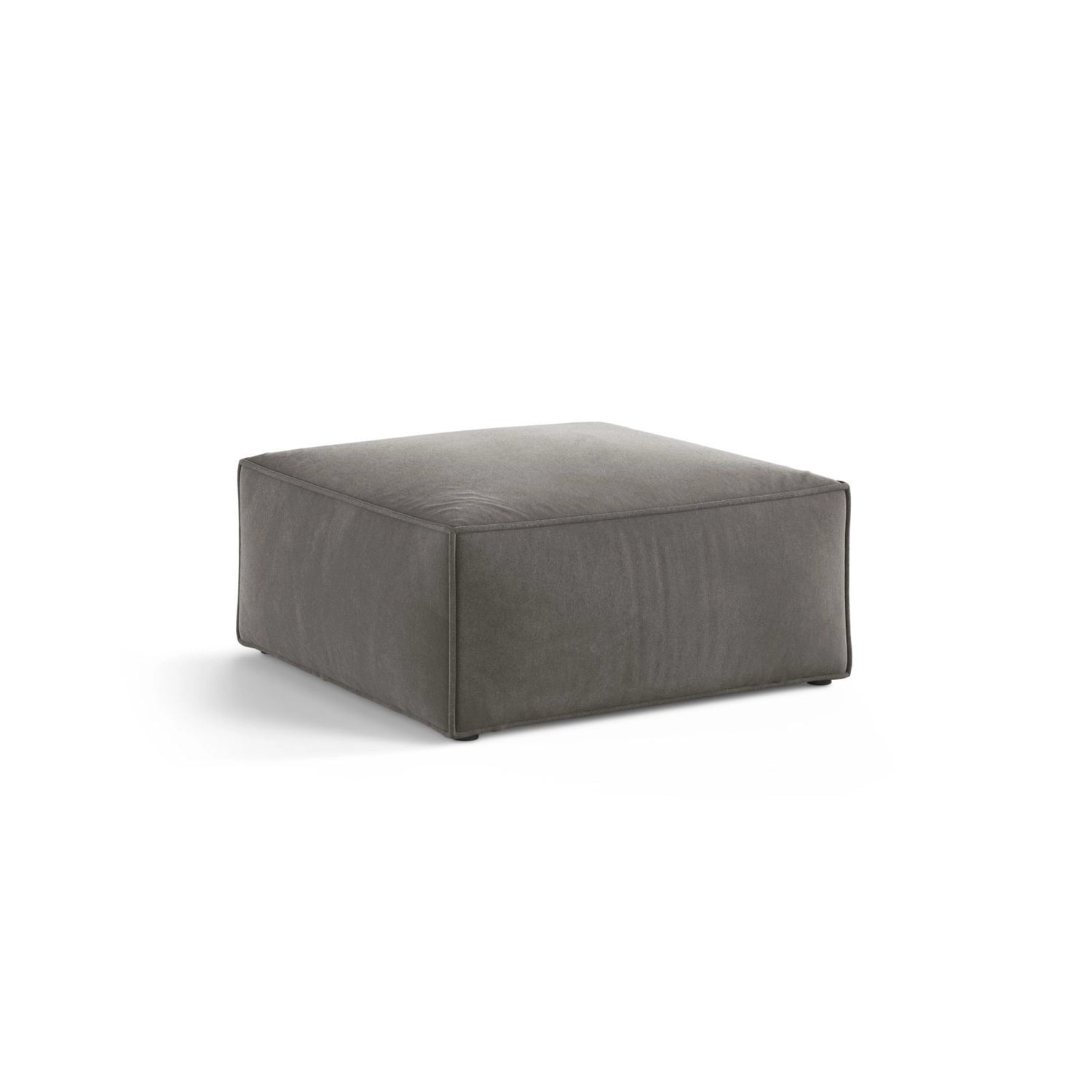 Le revêtement est en velours doux de haute qualité, légèrement brillant et à la surface lisse. Ce matériau se caractérise par une grande résistance à l'abrasion et aux rayures, ainsi que par une faible absorption des liquides, ce qui facilite son nettoyage. Le rembourrage est composé de mousse de polyuréthane d'une densité de 30 kg/m³ et d'une ouate de 100 g/m². Les pieds sont en plastique noir.
