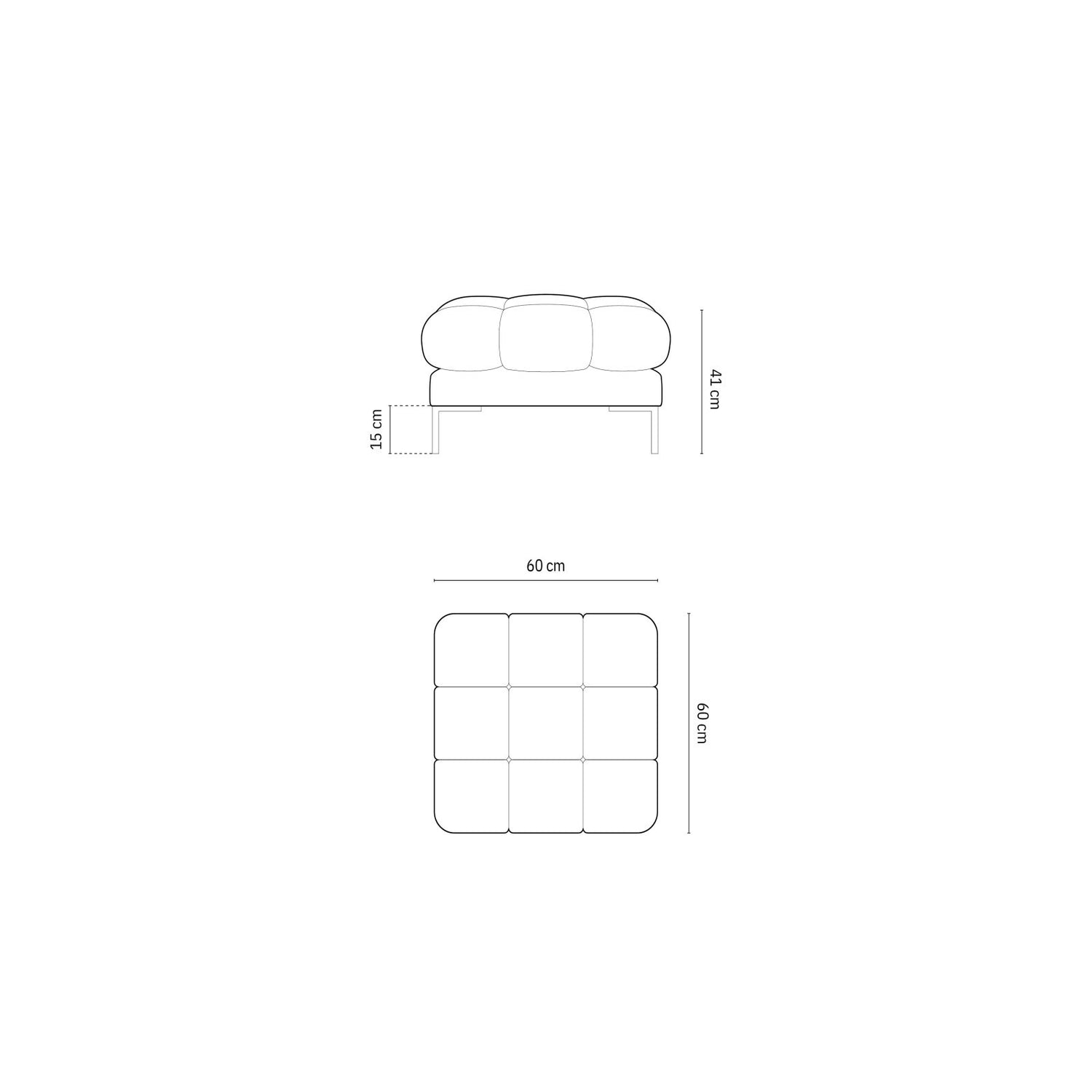 Dimensions : 60 x 60 x 41 cm (largeur x profondeur x hauteur). Hauteur d’assise : 41 cm. Hauteur des pieds : 15 cm. Charge maximale : 120 kg.