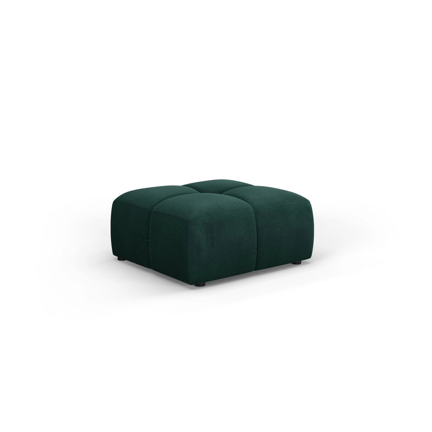 Le revêtement est confectionné en chenille Rebel 25 de haute qualité, réputée pour sa douceur et son aspect fin et velouté. Ses reflets irisés subtils, parsemés de mouchetures claires, confèrent au pouf un style unique. Sa structure robuste est composée de pin, de panneaux de particules et de contreplaqué, et repose sur des pieds en plastique noir de 2,5 cm de hauteur. Le rembourrage est en mousse de polyuréthane d'une densité de 35 kg/m³ et en ouate de 150 g/m².