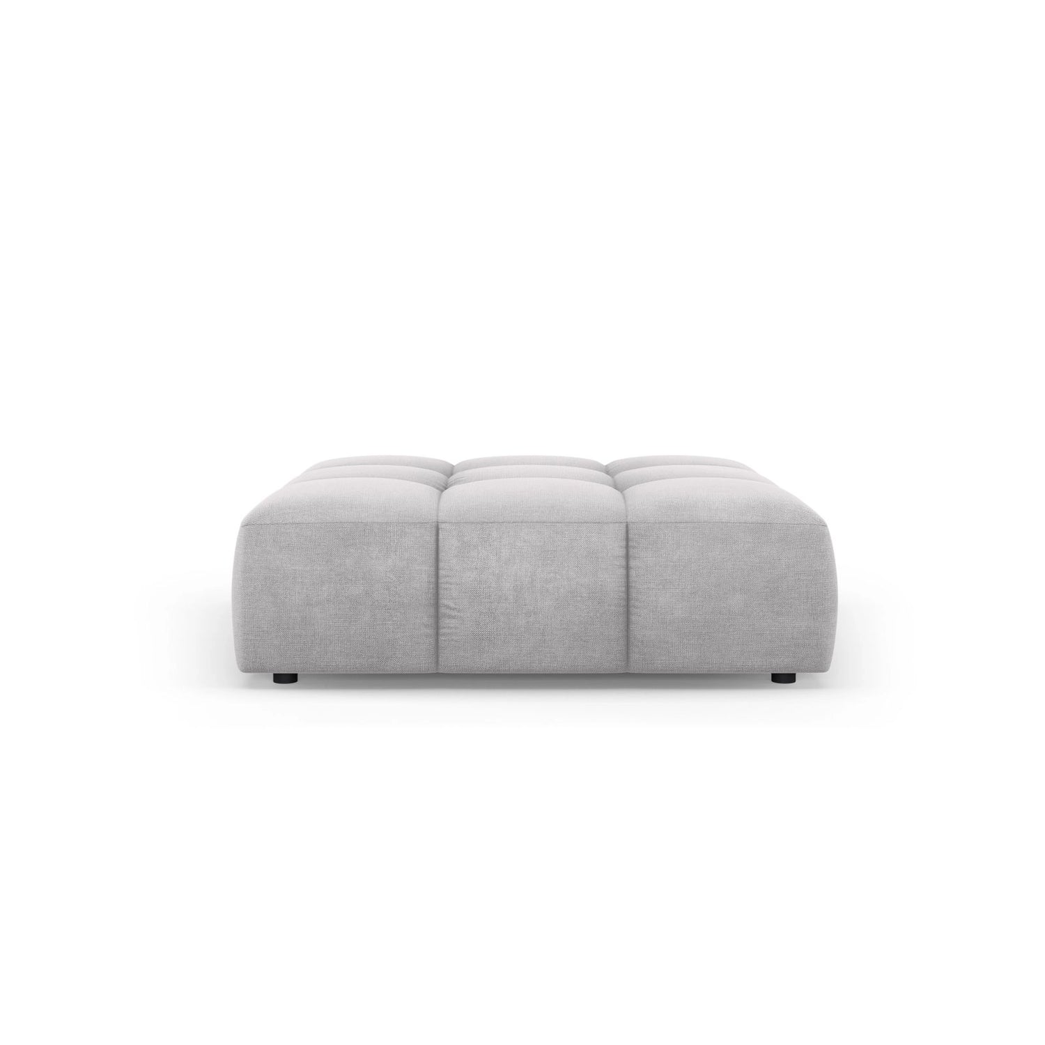 Le revêtement est confectionné en chenille Rebel 25 de haute qualité, qui séduit par son fin motif à carreaux et son velours doux et soyeux. Sa surface subtilement irisée, aux reflets irréguliers, confère au pouf une allure discrète et élégante. Sa structure robuste est composée de pin, de panneaux de particules, de panneaux de fibres et de contreplaqué, et repose sur des pieds en plastique noir.