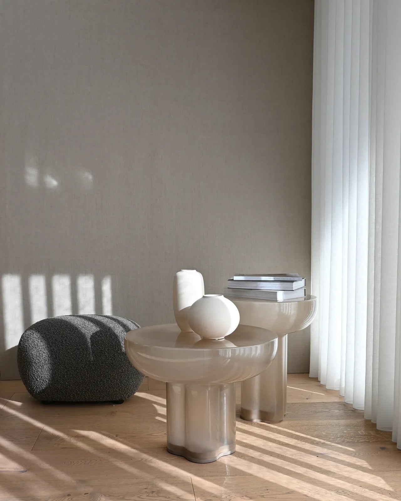 Pouf Toe aus Bouclé in Off White