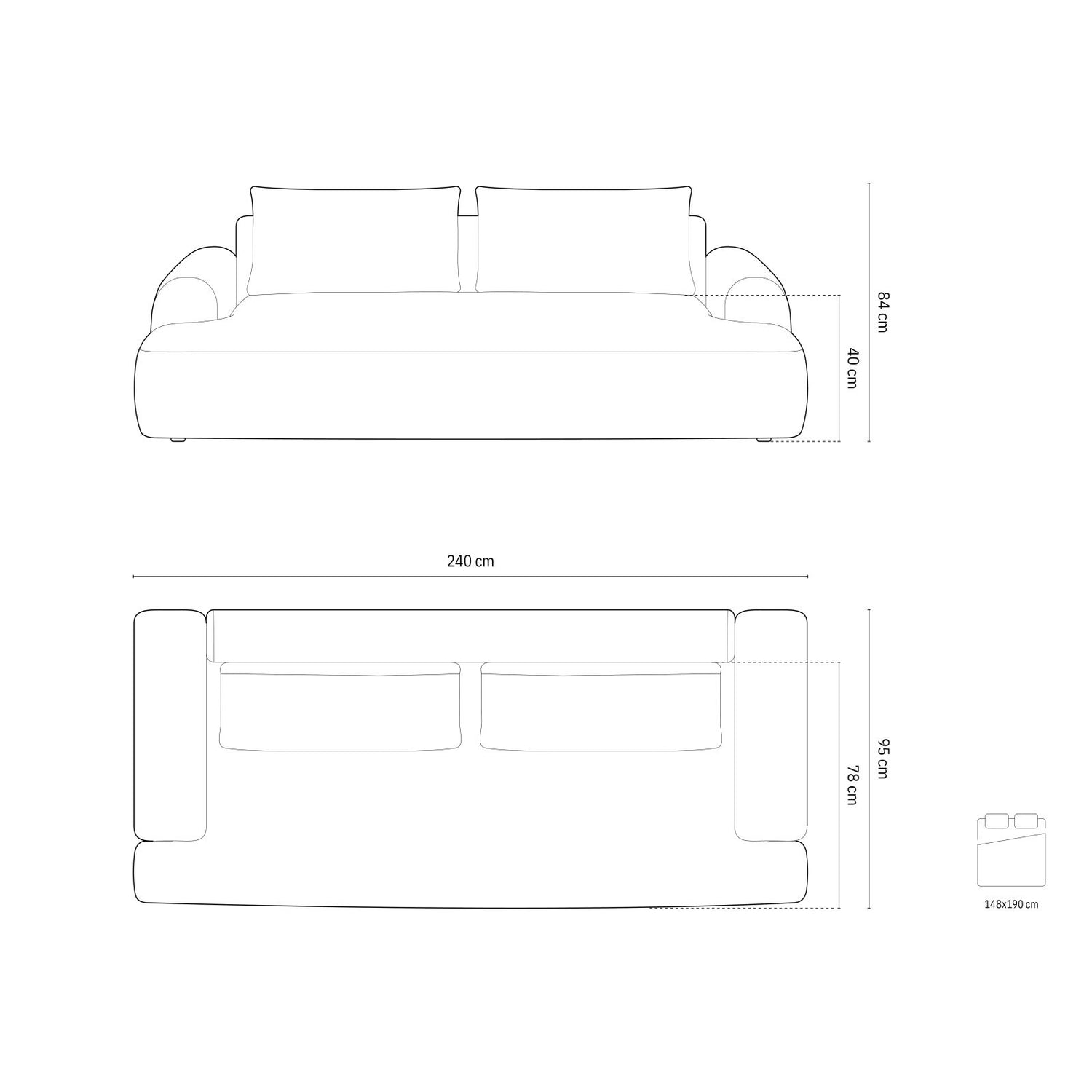 Canapé 4 places Calma avec fonction couchage et espace de rangement, en velours ou tissu texturé, 250 x 100 x 84 cm - Velours (Vogue 1), beige clair // Pieds en plastique noir est en rupture de stock et sera expédié dès qu’il sera de retour en stock.