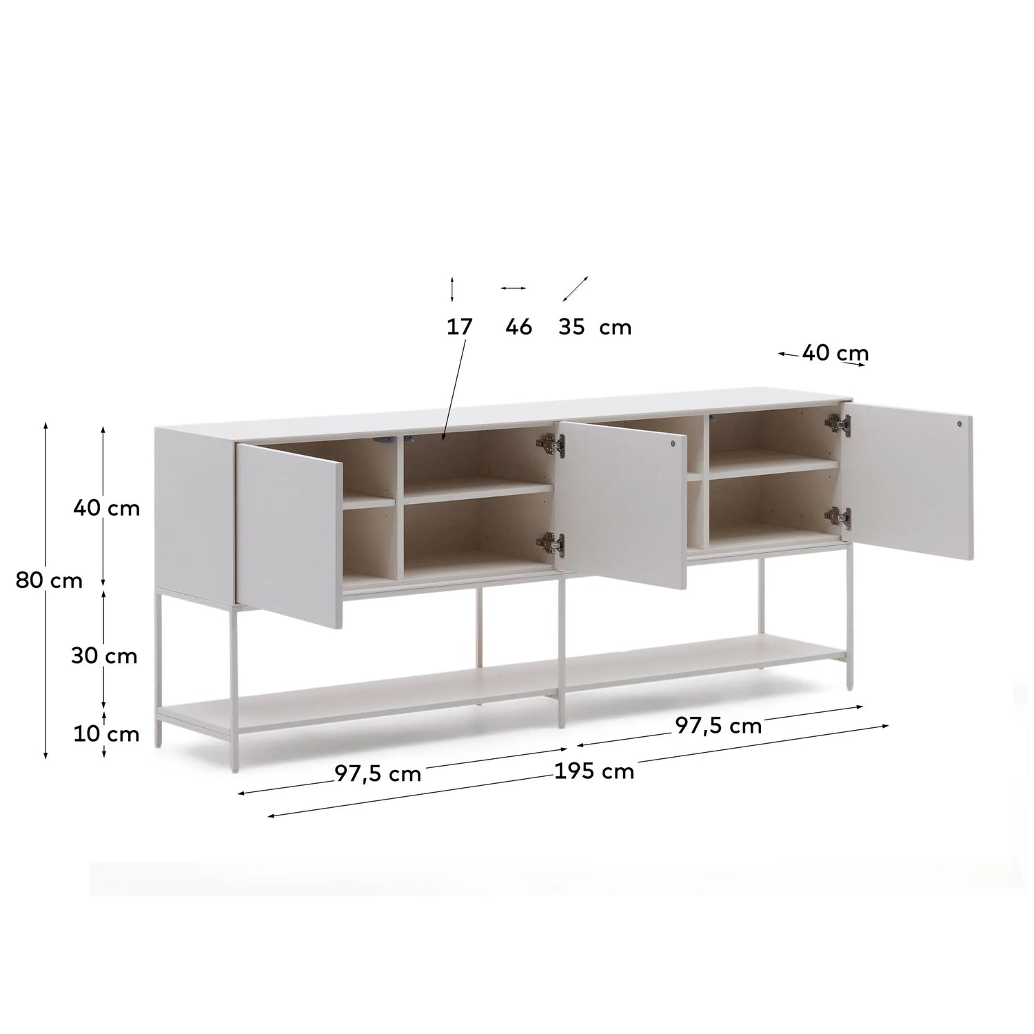 Buffet Vedrana 3 portes, MDF laqué blanc, 195 x 80 cm