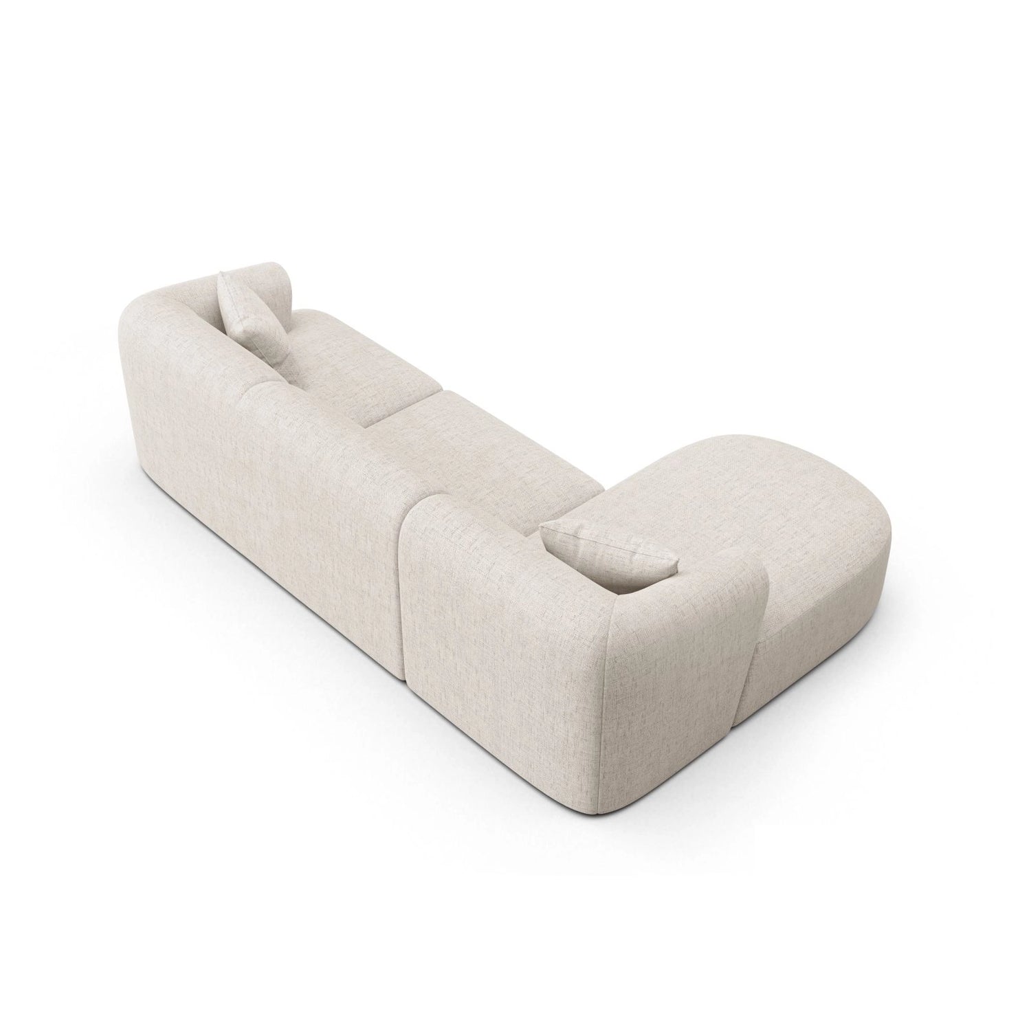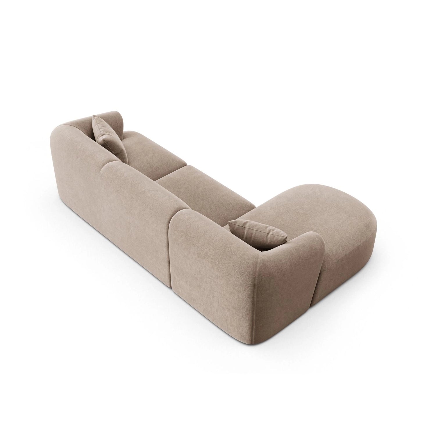 Canapé d'angle 4 places Campi, côté gauche, en velours beige clair (Vogue 1), 256 x 156 x 70 cm