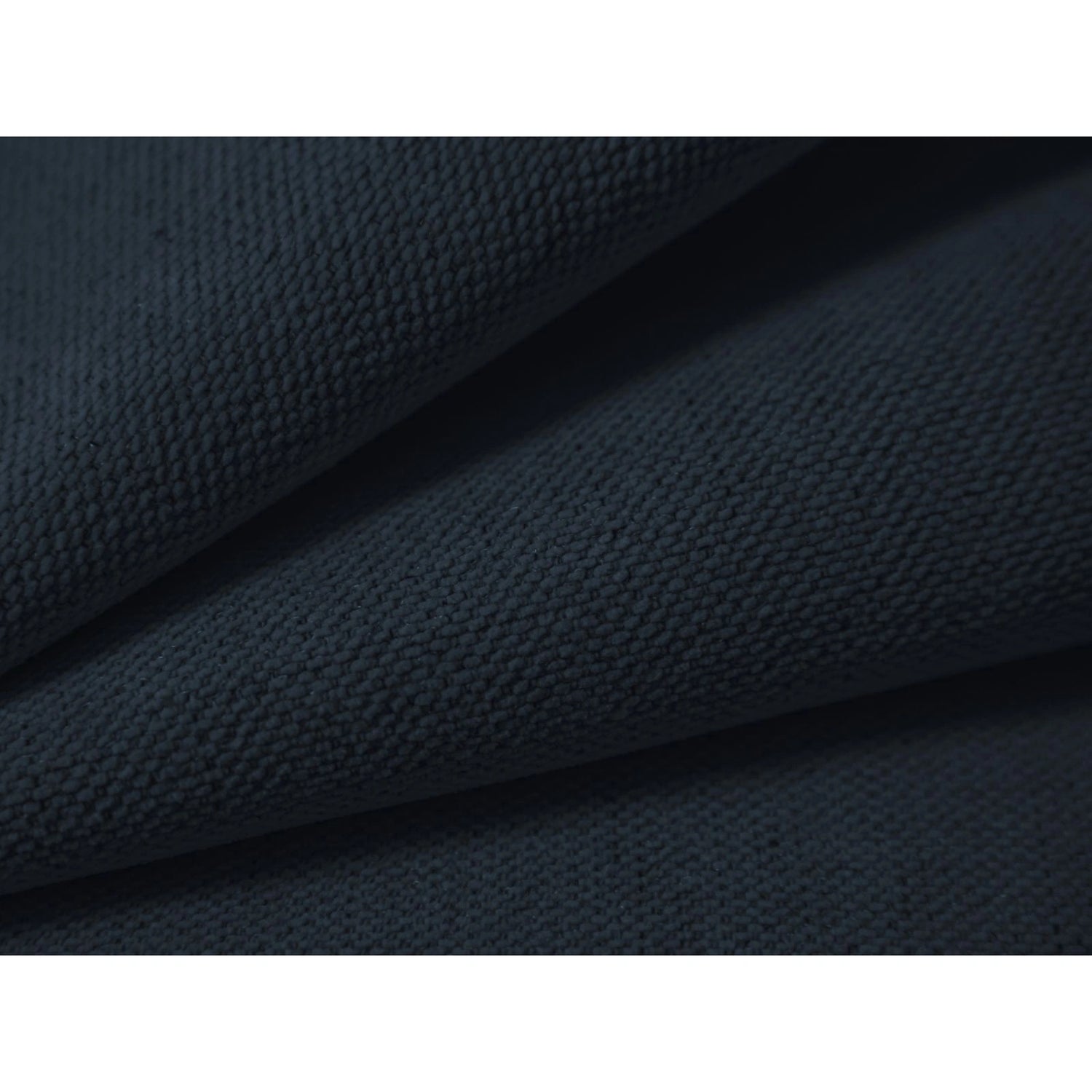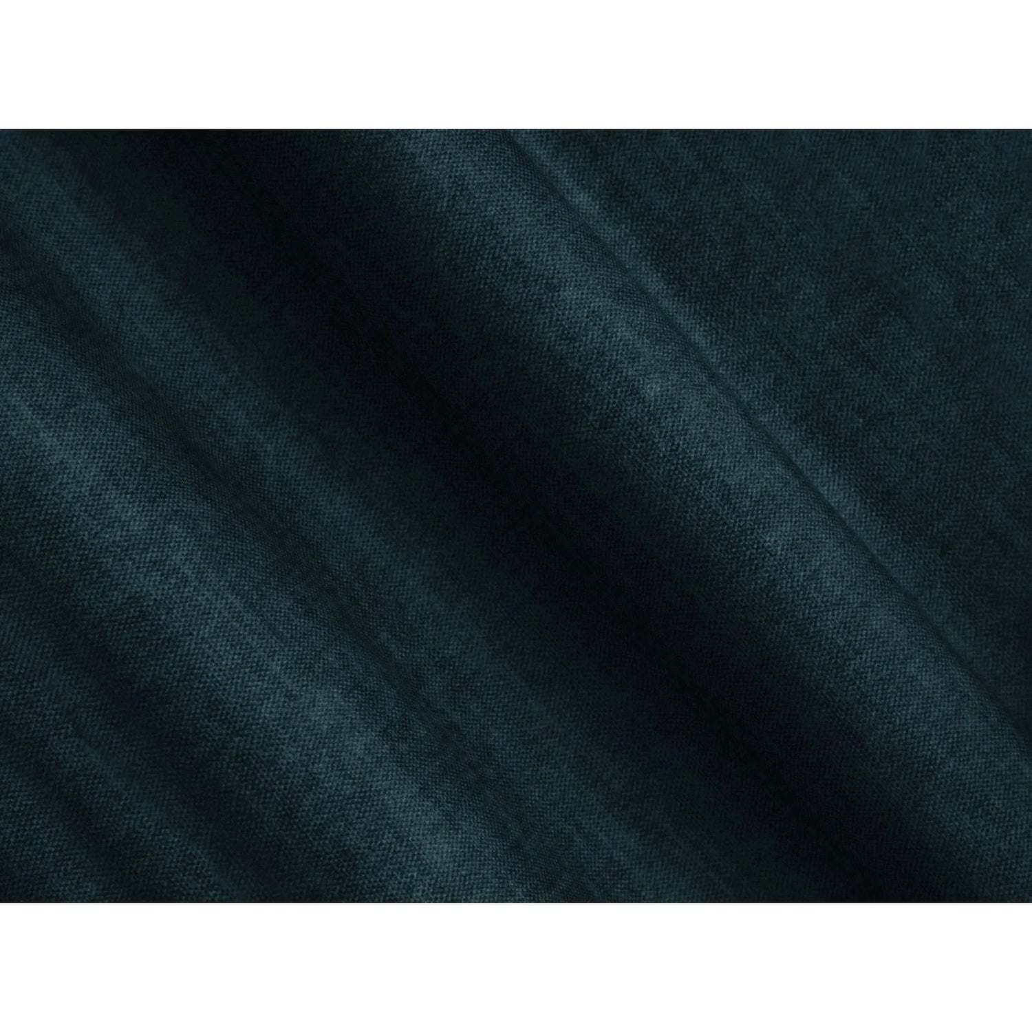 Le revêtement est en velours dense de haute qualité, à la surface fine et subtilement chatoyante, caractérisée par sa texture discrète et son aspect velouté. Ce matériau 100 % polyester est exceptionnellement résistant à l'abrasion et au boulochage (105 000 cycles Martindale) et certifié OEKO-TEX® STANDARD 100. Le rembourrage est composé de mousse de polyuréthane à densités variables, complétée par de la ouate pour un confort accru. La structure est en pin massif, panneaux de particules, panneaux de fibres et contreplaqué, tandis que les pieds sont en plastique noir.