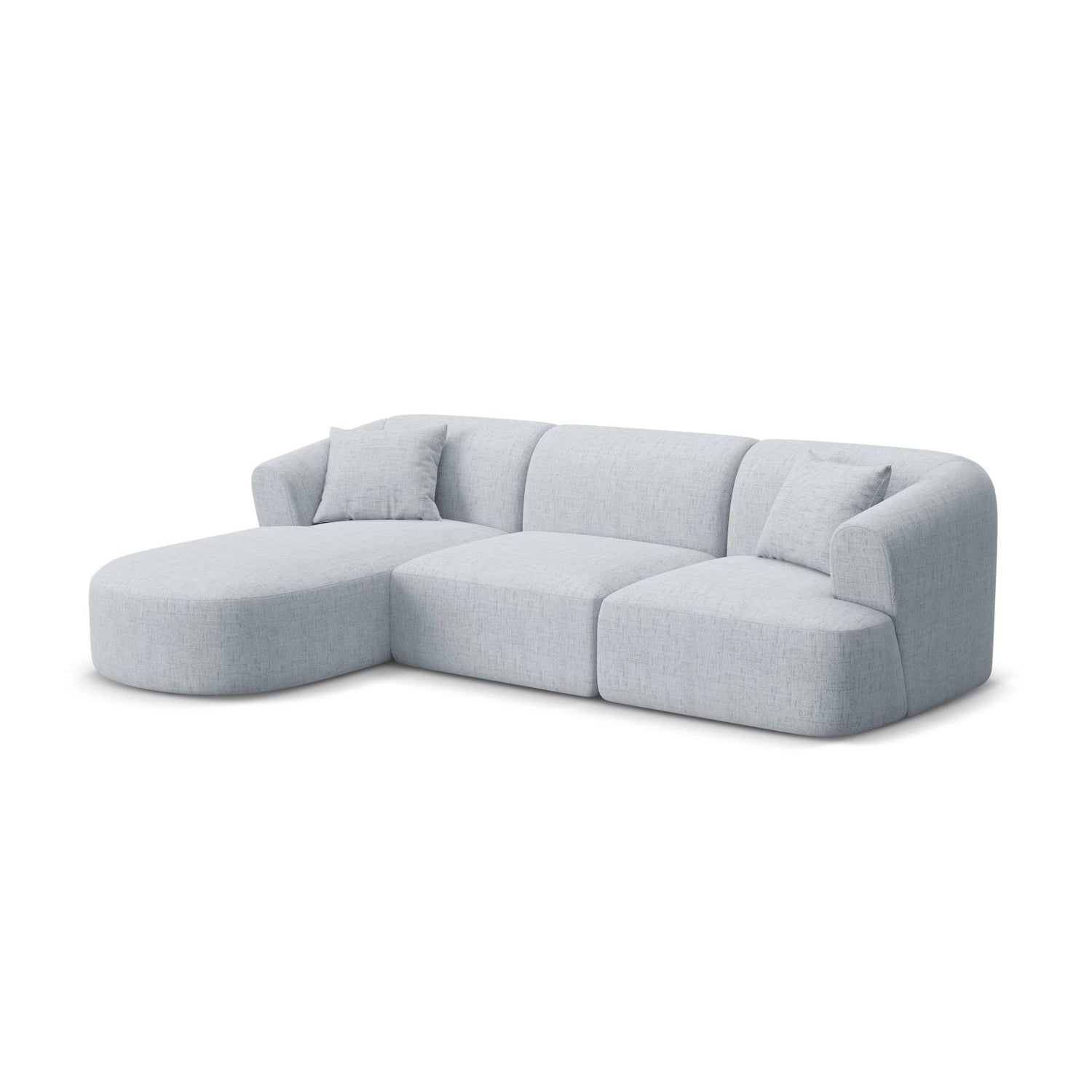 Ce canapé est idéal pour les intérieurs modernes, alliant confort et design élégant et contemporain. Sa configuration avec méridienne à gauche et sa spacieuse méridienne offrent de multiples possibilités d'assise et de détente. La hauteur d'assise est de 40 cm, la hauteur du dossier de 30 cm, et les accoudoirs mesurent 18 cm de large et 65 cm de haut. Les pieds, de couleur noire, ont une hauteur de 2,5 cm.