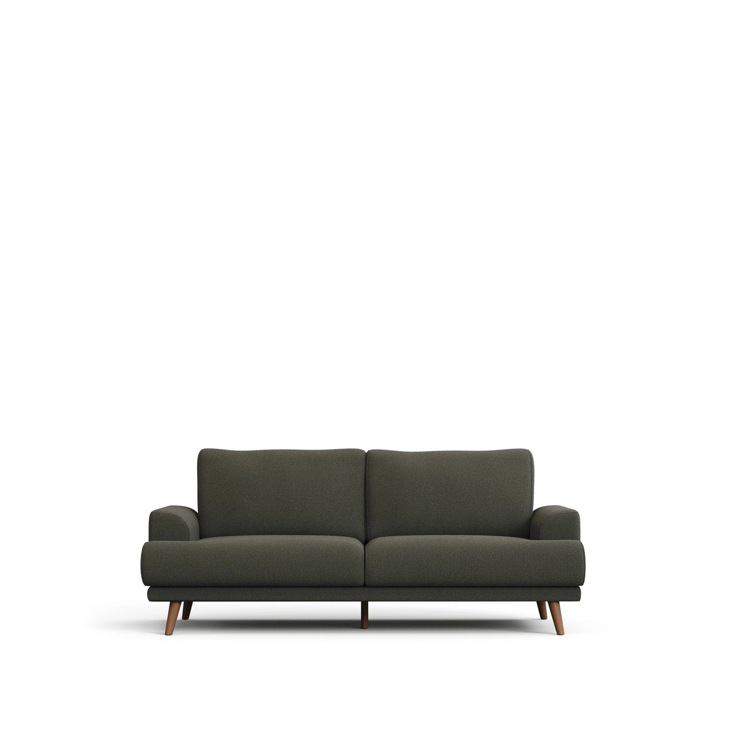 Canapé 2 places Karin en chenille vert foncé avec pieds en hêtre massif, 210 cm