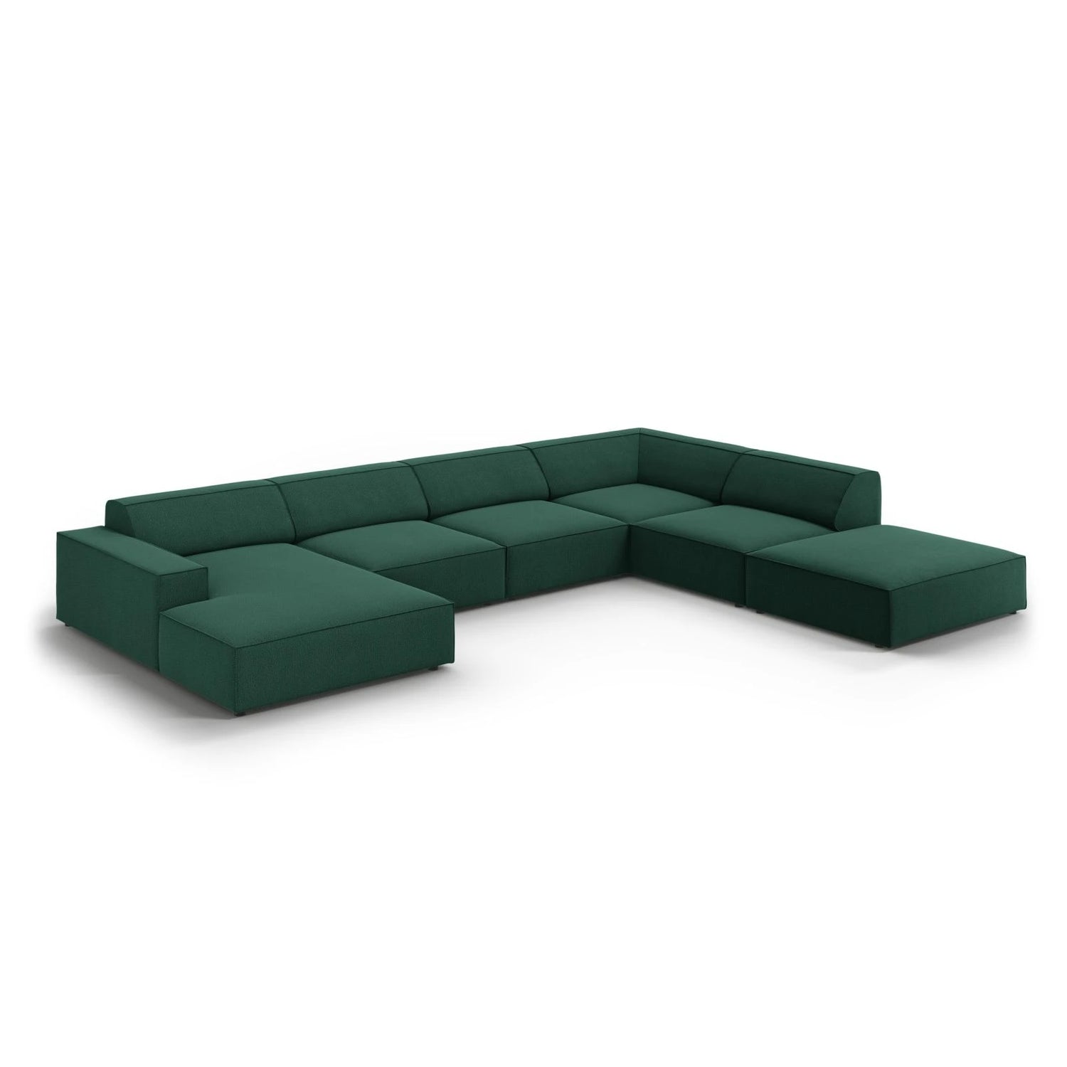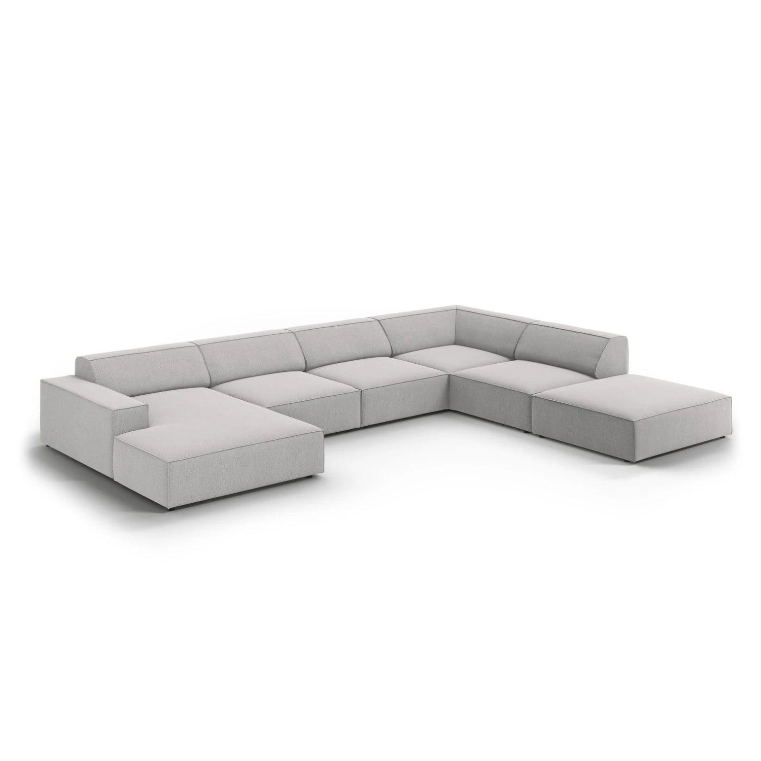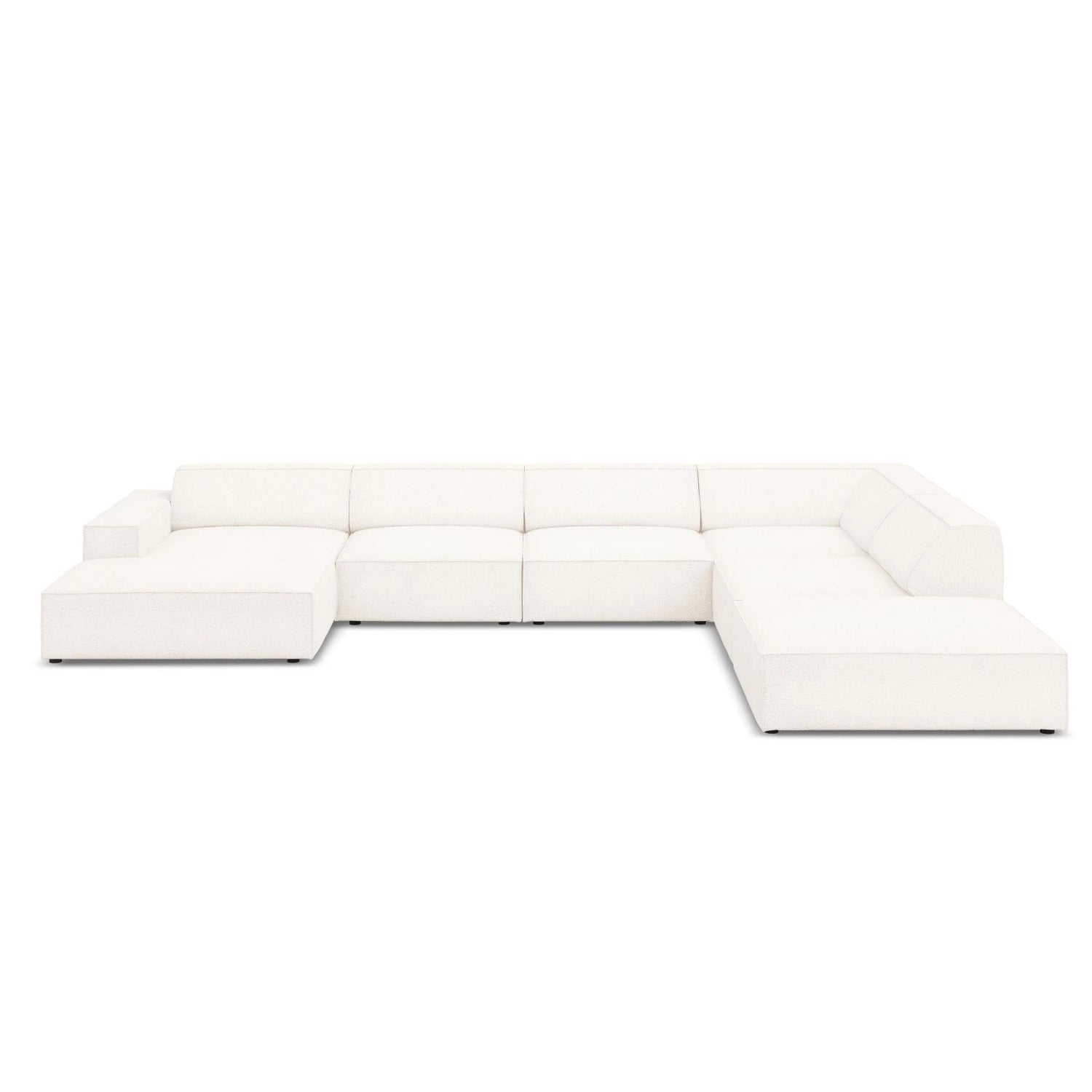 Besoin d'un canapé extra-large ? Le canapé panoramique 7 places Jodie de Micadoni (à droite) est fait pour vous. Offrant un confort exceptionnel, il invite à la détente. Le canapé Jodie se distingue par son design panoramique spacieux et sa silhouette élégante. Son rembourrage confortable assure une relaxation optimale, et son assise profonde est idéale pour se prélasser. Vous pourrez également vous adosser confortablement aux dossiers profilés et aux larges accoudoirs, pour une relaxation sans contraintes. Si vous recherchez un canapé spectaculaire alliant confort et style, le Jodie est le choix parfait. La légère différence de hauteur entre l'assise du canapé (la partie avec le dossier) et le pouf est conçue de manière ergonomique. L'assise du canapé est légèrement inclinée vers le dossier pour un confort accru, tandis que le pouf conserve une hauteur constante sur toute sa surface. Cette différence n'est visible qu'à la jonction des deux modules.
