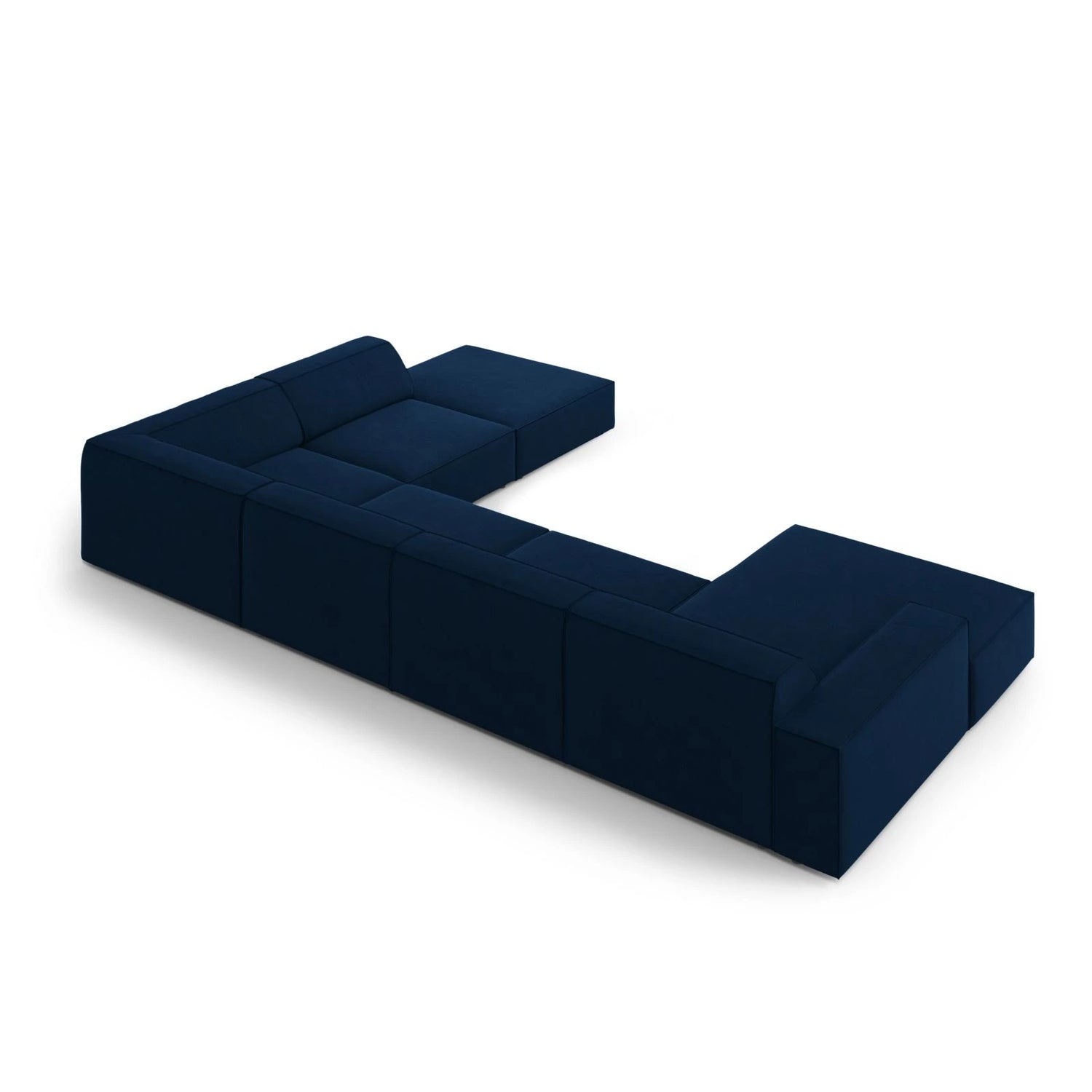 Canapé d'angle panoramique 7 places Jodie, côté droit, en velours ou tissu texturé, 364 x 262 cm - Velours (Blu22), Beige clair est en rupture de stock et sera expédié dès qu’il sera de retour en stock.