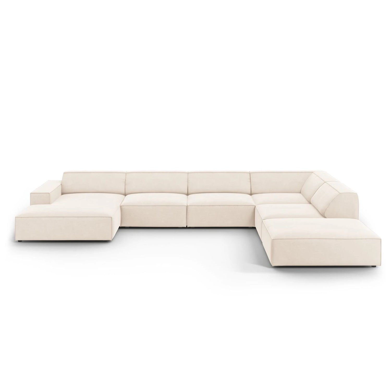 Canapé d'angle panoramique 7 places Jodie, côté droit, en velours (Blu22) beige clair, 364 x 262 cm