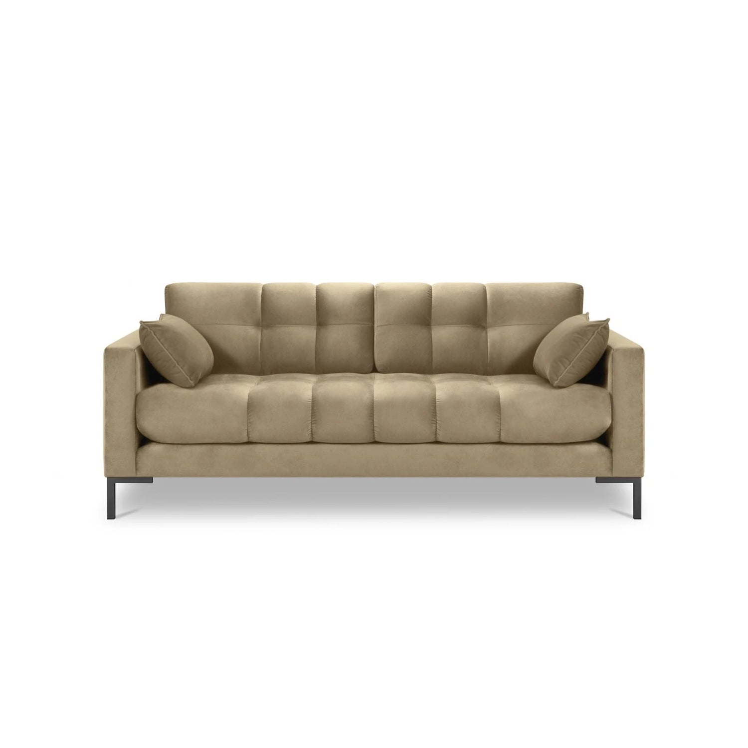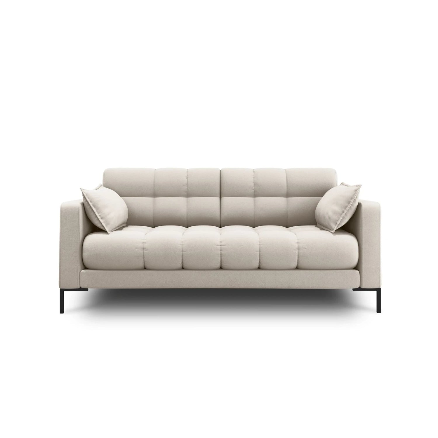 Canapé 2 places Mamaia, pieds en métal noir, revêtement en velours ou tissu texturé, 152 x 96 cm - Tissu texturé (Nev02), beige clair est en rupture de stock et sera expédié dès qu’il sera de retour en stock.