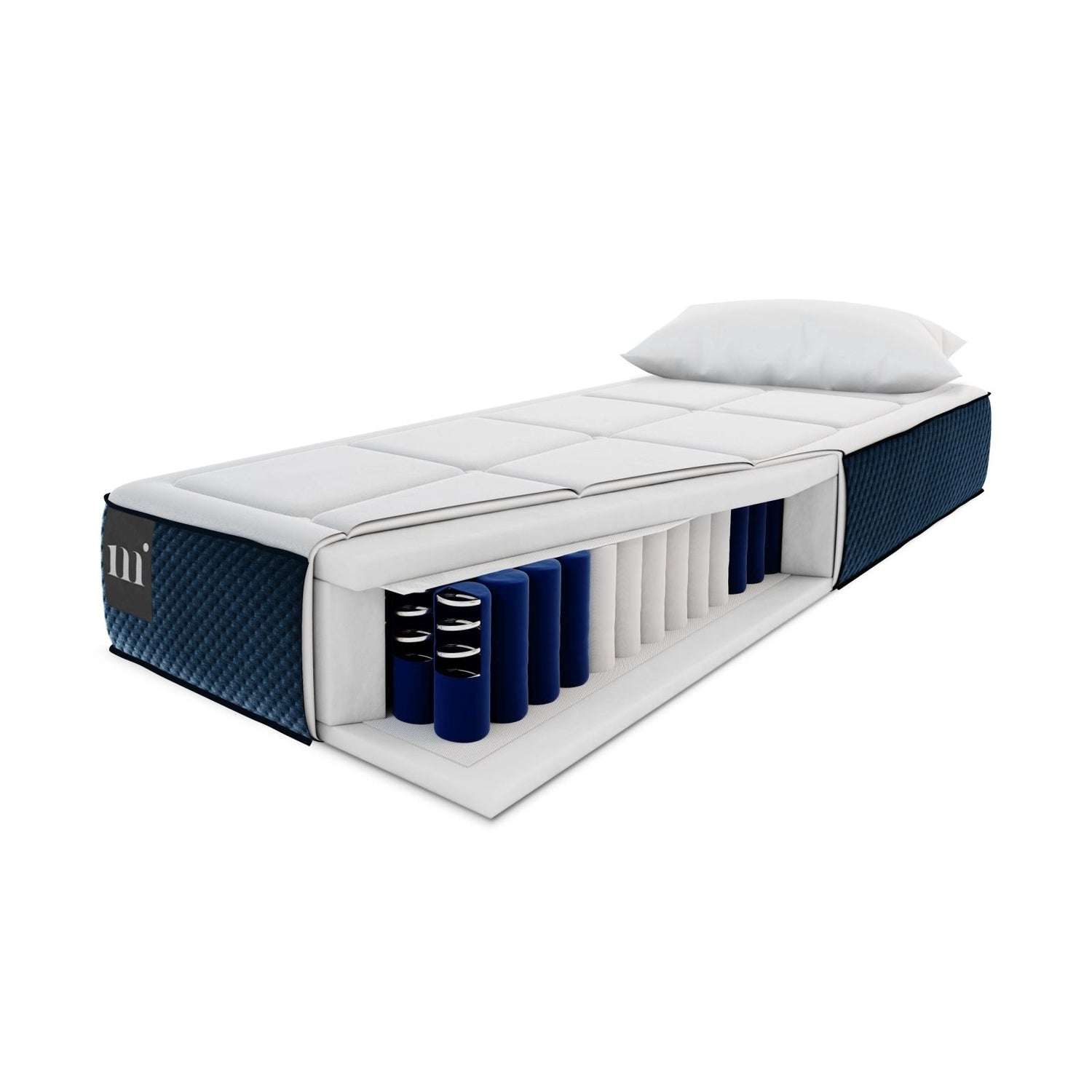 Sidi Matratze mit Taschenfederkern aus Strukturierter Stoff in Weiß und blau, 90x200 cm