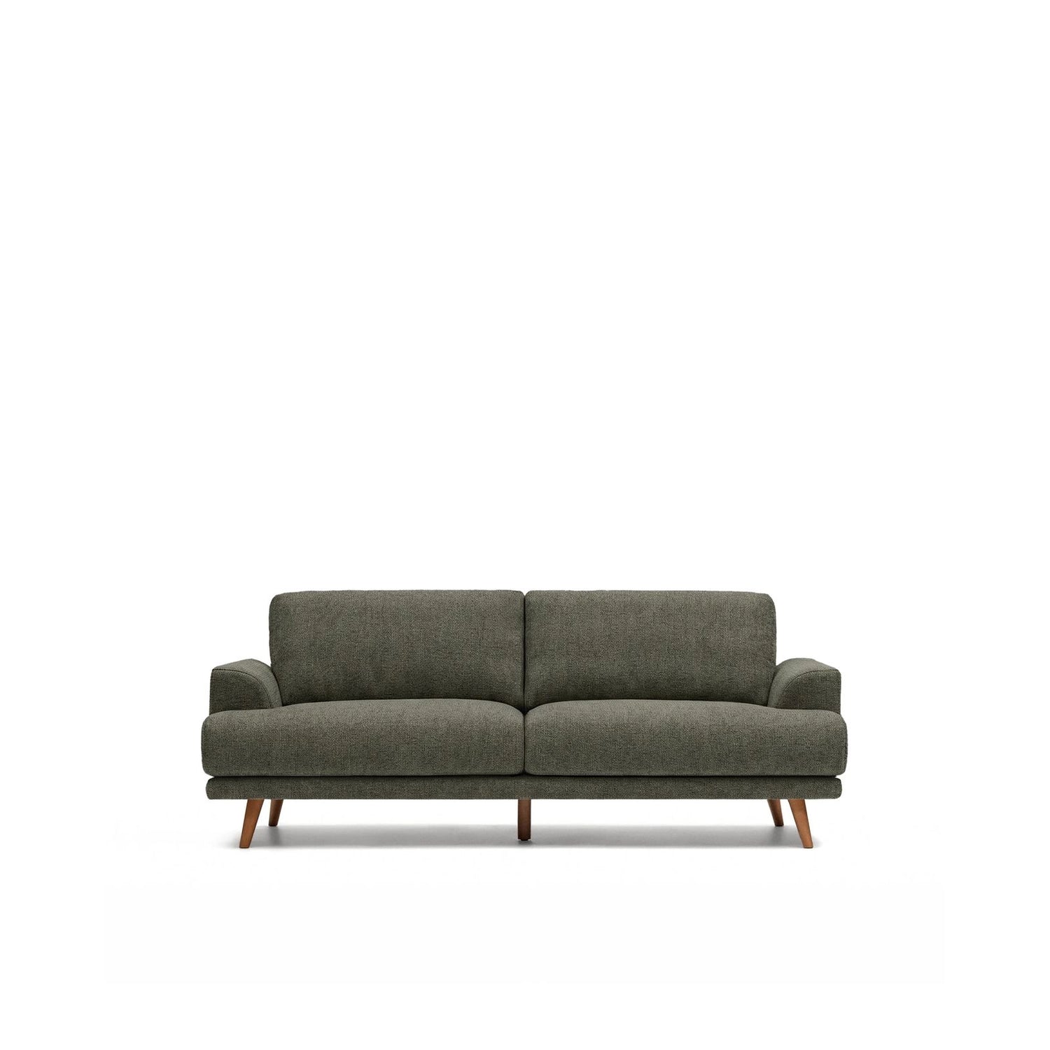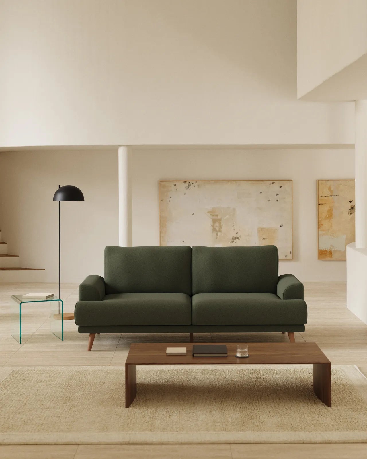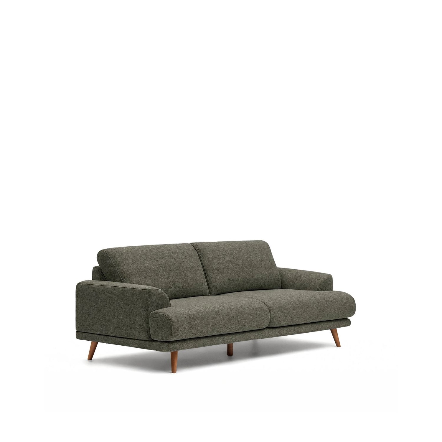 2-Sitzer-Sofa Karin aus beiger Chenille mit Beinen aus massivem Buchenholz mit walnussfarbener Oberfläche 210 cm