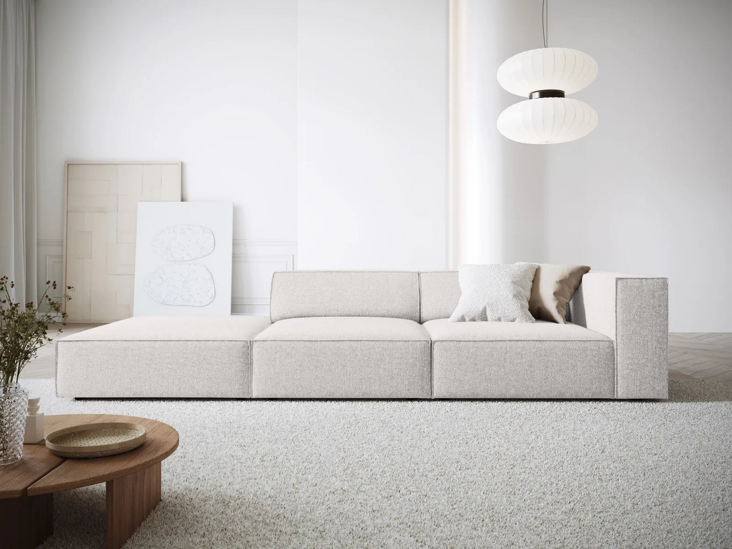 Das Arendal 4-Sitzer Sofa in linksseitiger Ausführung präsentiert sich in einem eleganten Samtbezug in der Farbe Flamingo (Casino Salmon). Die Kombination aus hochwertigem Material und durchdachtem Design sorgt für Komfort und Stil.