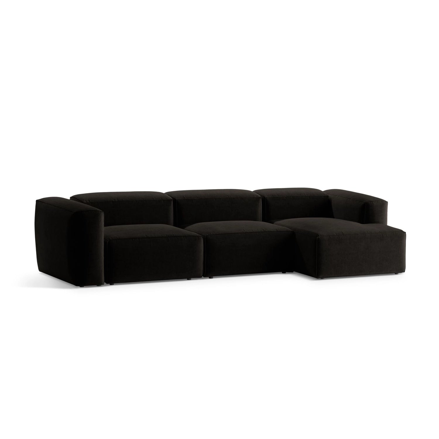 Das Sofa eignet sich für moderne Wohnräume und bietet durch seine modulare Bauweise Flexibilität. Die dezente Farbgebung und die feine Textur des Bezugs fügen sich harmonisch in unterschiedliche Einrichtungsstile ein.