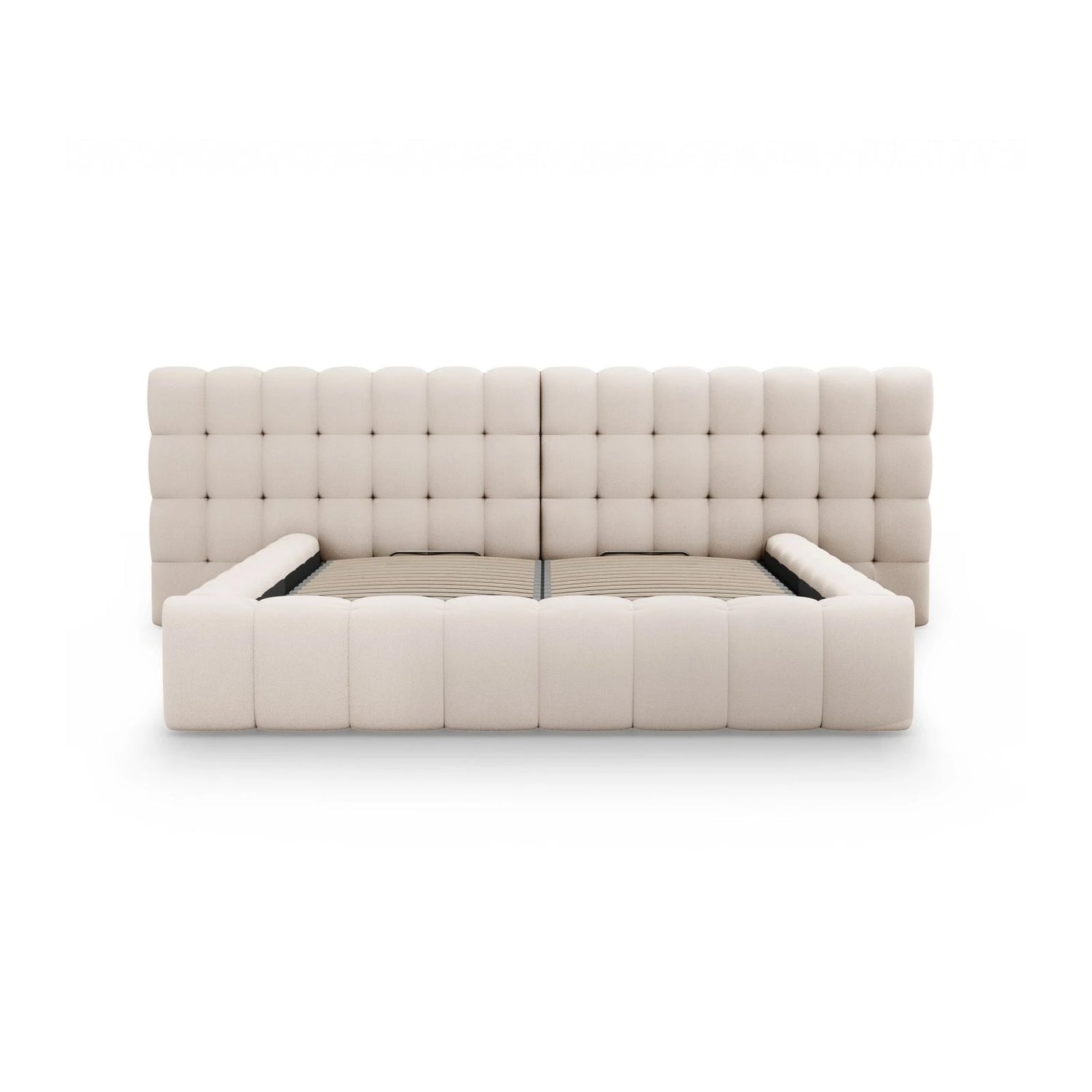 Mamaia Bett mit Stauraum und Doppelkopfteil in Strukturierter Stoff (Nev02) in Leichtes Beige, 180x200 cm