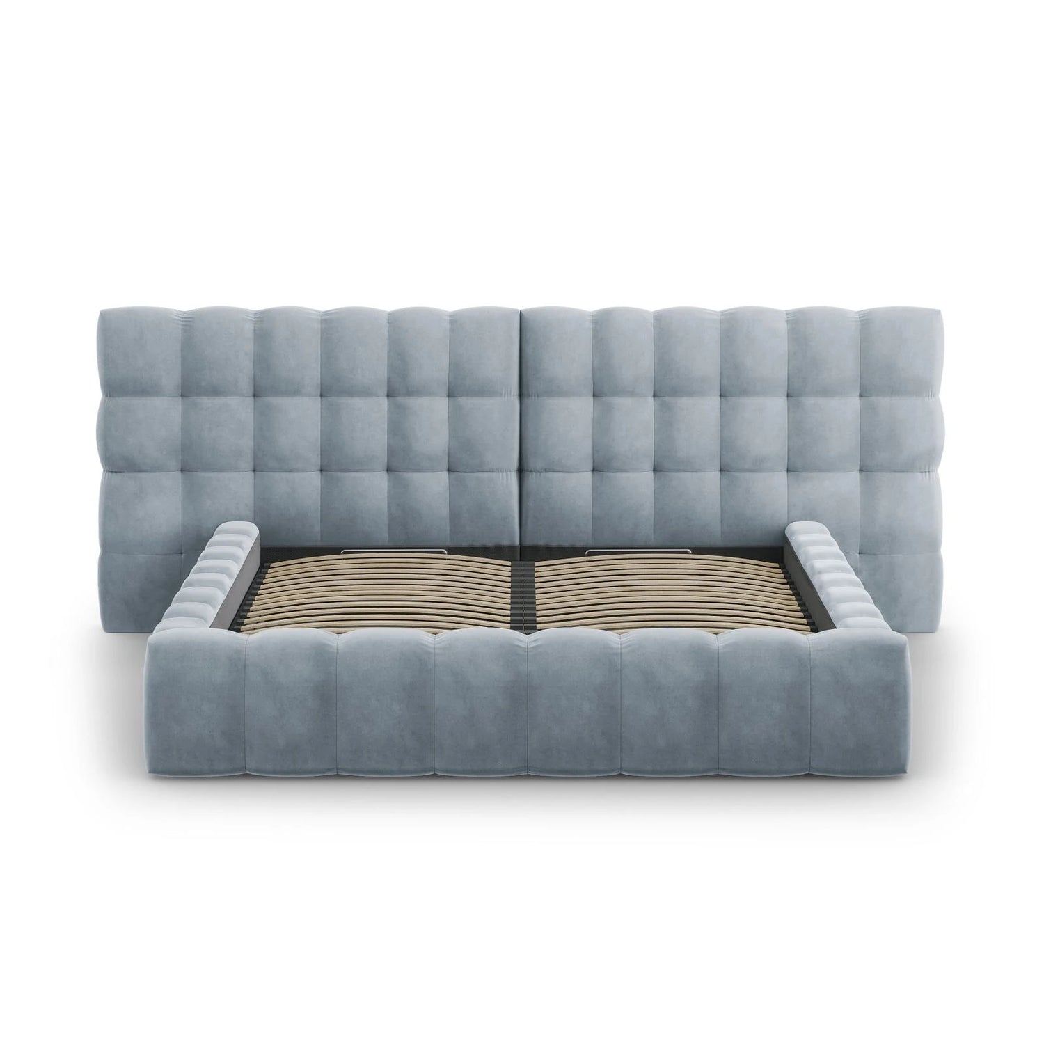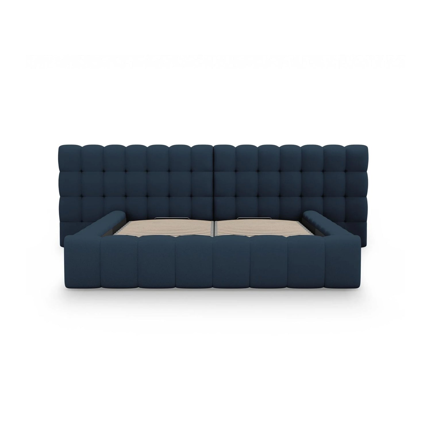 Ihr Schlafzimmer dekorieren? Sehen Sie sich das Bett Mamaia von Micadoni für Matratzen in der Grösse 200x200 cm an, es sorgt für einen erholsamen Schlaf und Stauraum. Die breite Kopfstütze garantiert Komfort. Die sorgfältige Steppung des Bezugs des Bubble Mamaia-Betts macht es zu einem außergewöhnlichen Möbelstück, das jedes Schlafzimmer mit positiver Energie füllt. Ein Blick auf das Bett macht Lust, sich hinzulegen und einen friedlichen Nachtschlaf zu genießen. Dank des weichen Kopfteils können Sie auch vor dem Einschlafen ein Buch lesen oder einen Film ansehen und morgens ein gemütliches Frühstück im Bett genießen. Das Kopfteil passt perfekt zur Größe und zum Steppmuster des Bettes und schafft so einen zusammenhängenden und eleganten Look. Der Bettrahmen bietet viel Platz zur Aufbewahrung von Bettwäsche und anderen Textilien. Der luxuriöse Bezug besteht aus weichem, strapazierfähigem Material, das Modernität und Eleganz ausstrahlt und sich perfekt für den täglichen Gebrauch eignet. Mit verschiedenen Bettbreiten können Sie es leicht an die Größe Ihres Schlafzimmers anpassen. Das Mamaia-Bett ist außerordentlich robust und solide und passt perfekt zu anderen Elementen des Zimmers, wie dem Hocker und dem Sessel. Kasten: Gaslift-Bettkasten mit Frontöffnung Je nach Größe des Produkts kann die Anzahl der Stiche auf dem Kopfteil variieren. Metallrahmen mit elastischen Lamellen