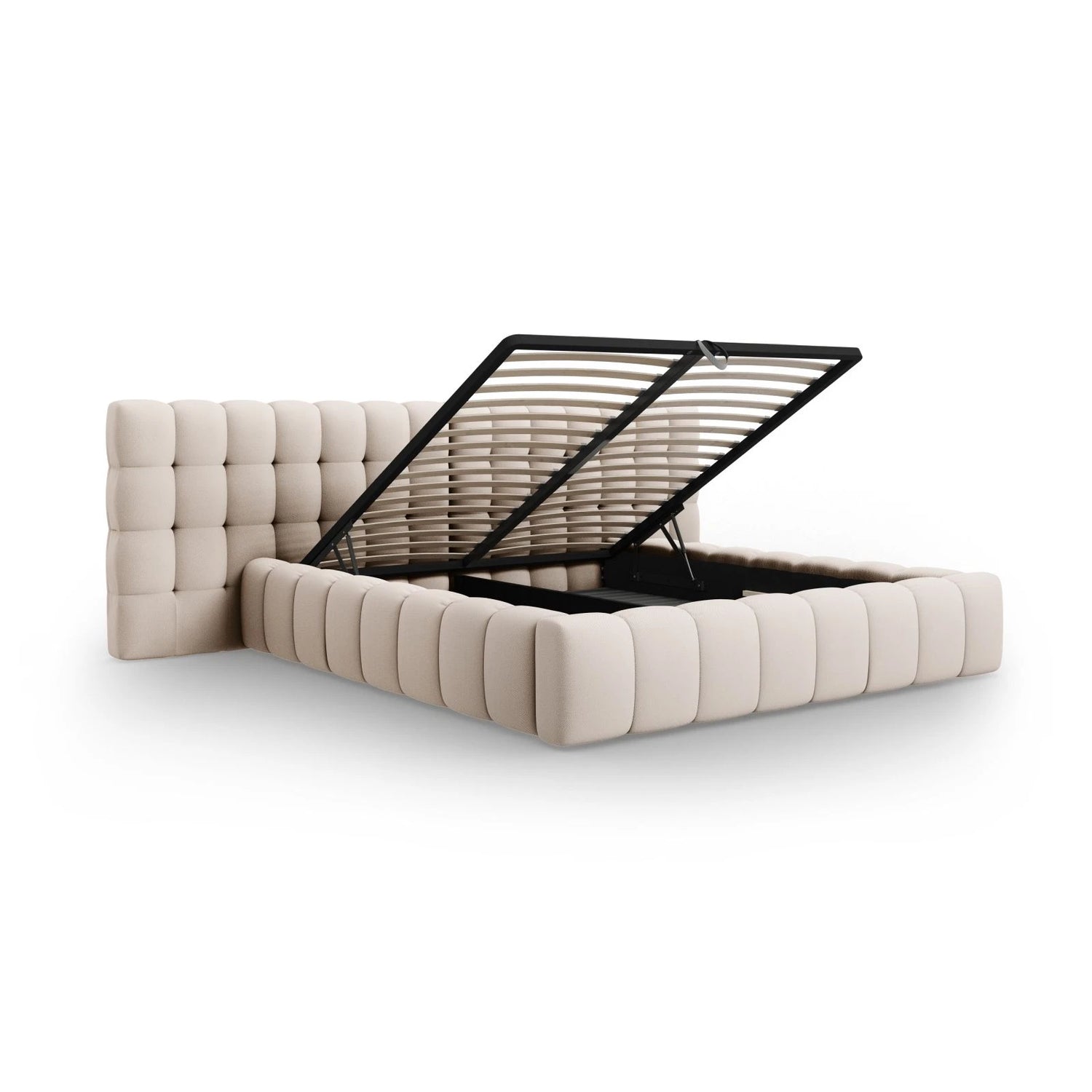 Mamaia Bett mit Stauraum und Doppelkopfteil in Strukturierter Stoff (Nev02) in Leichtes Beige, 200x200 cm