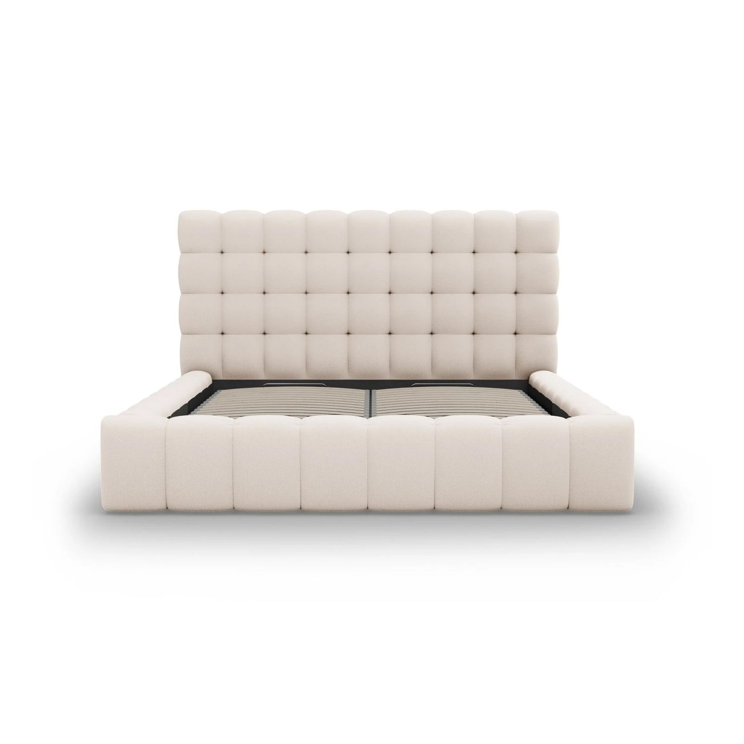 Mamaia Bett mit Stauraum und Kopfteil in Strukturierter Stoff (Nev02) in Leichtes Beige, 180x200 cm