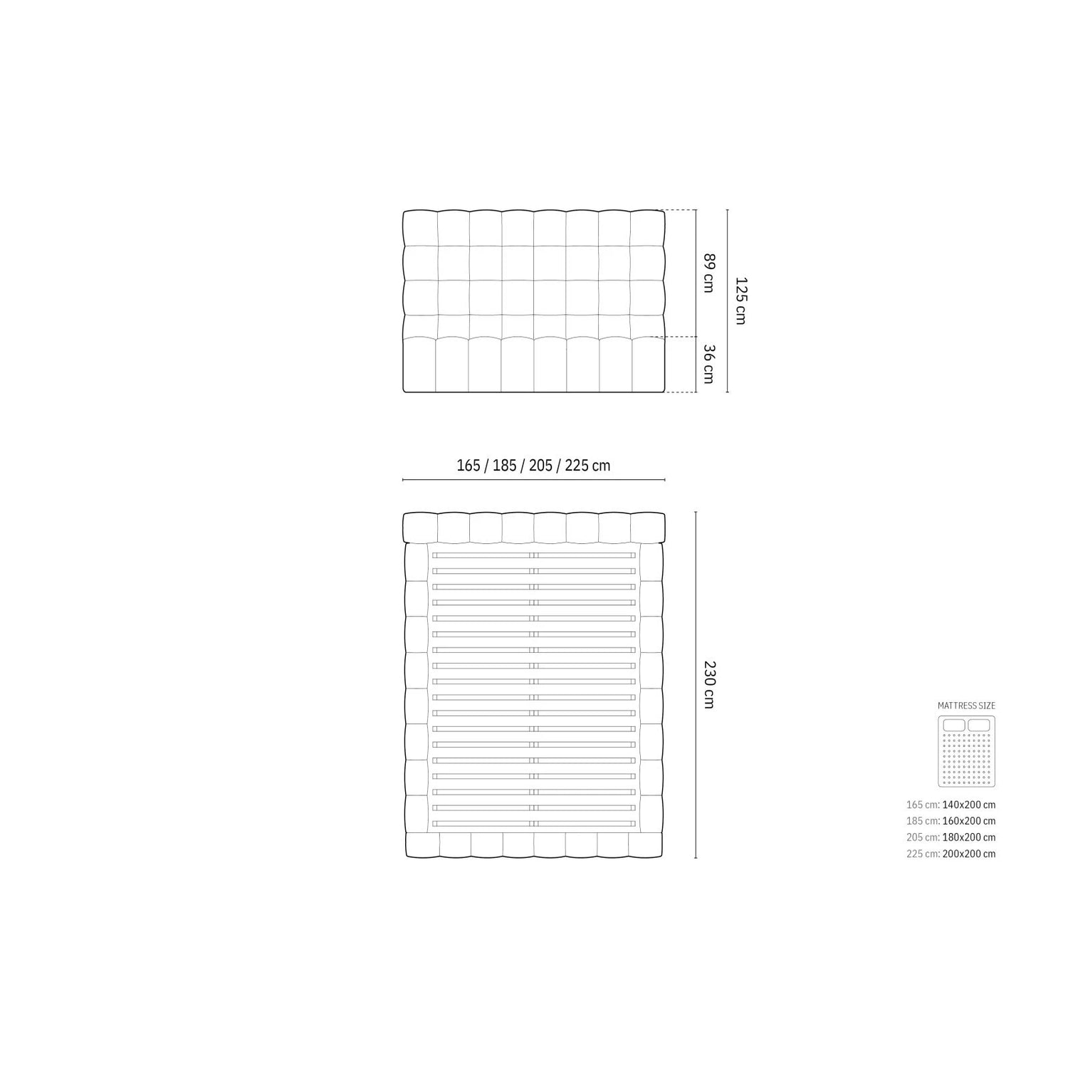 230cm x 205cm x 125cm (Länge x Breite x Höhe)