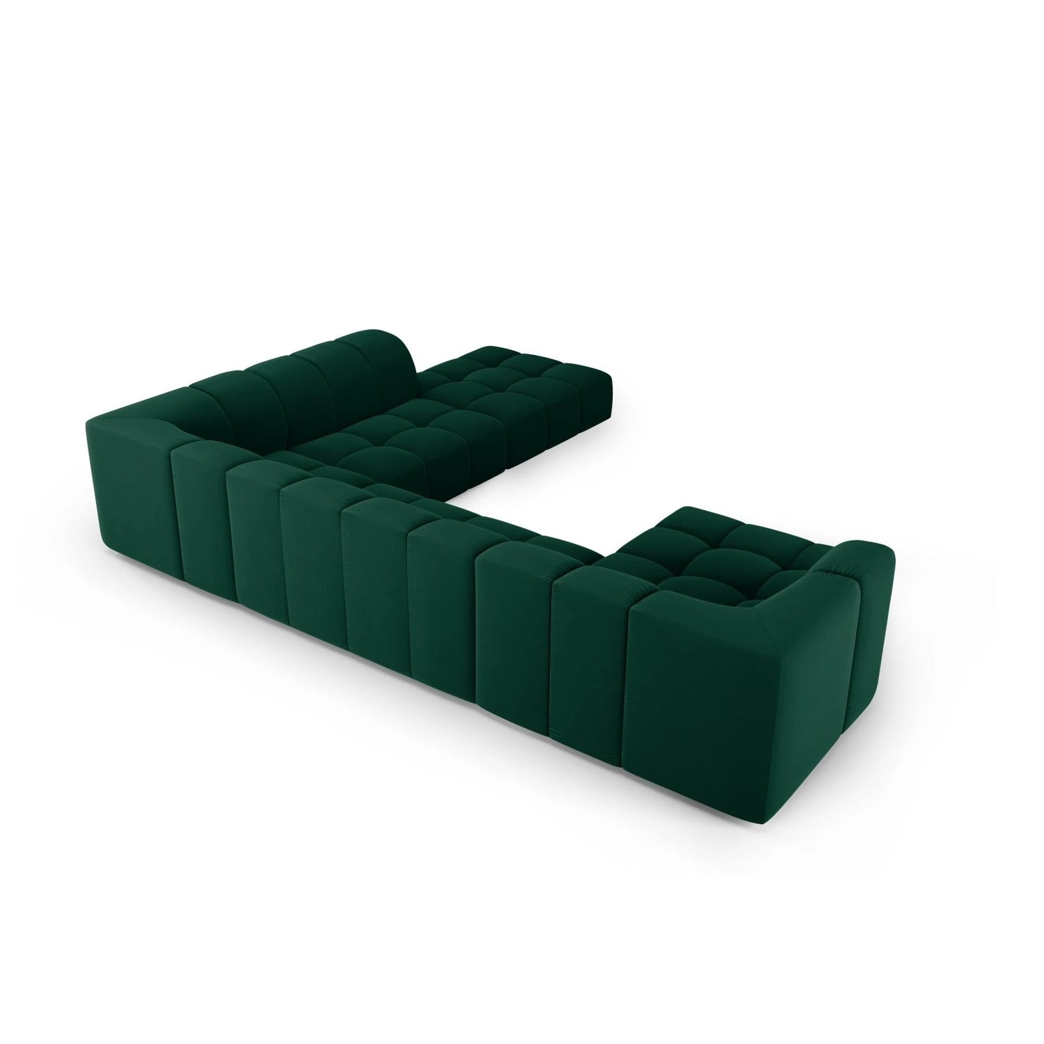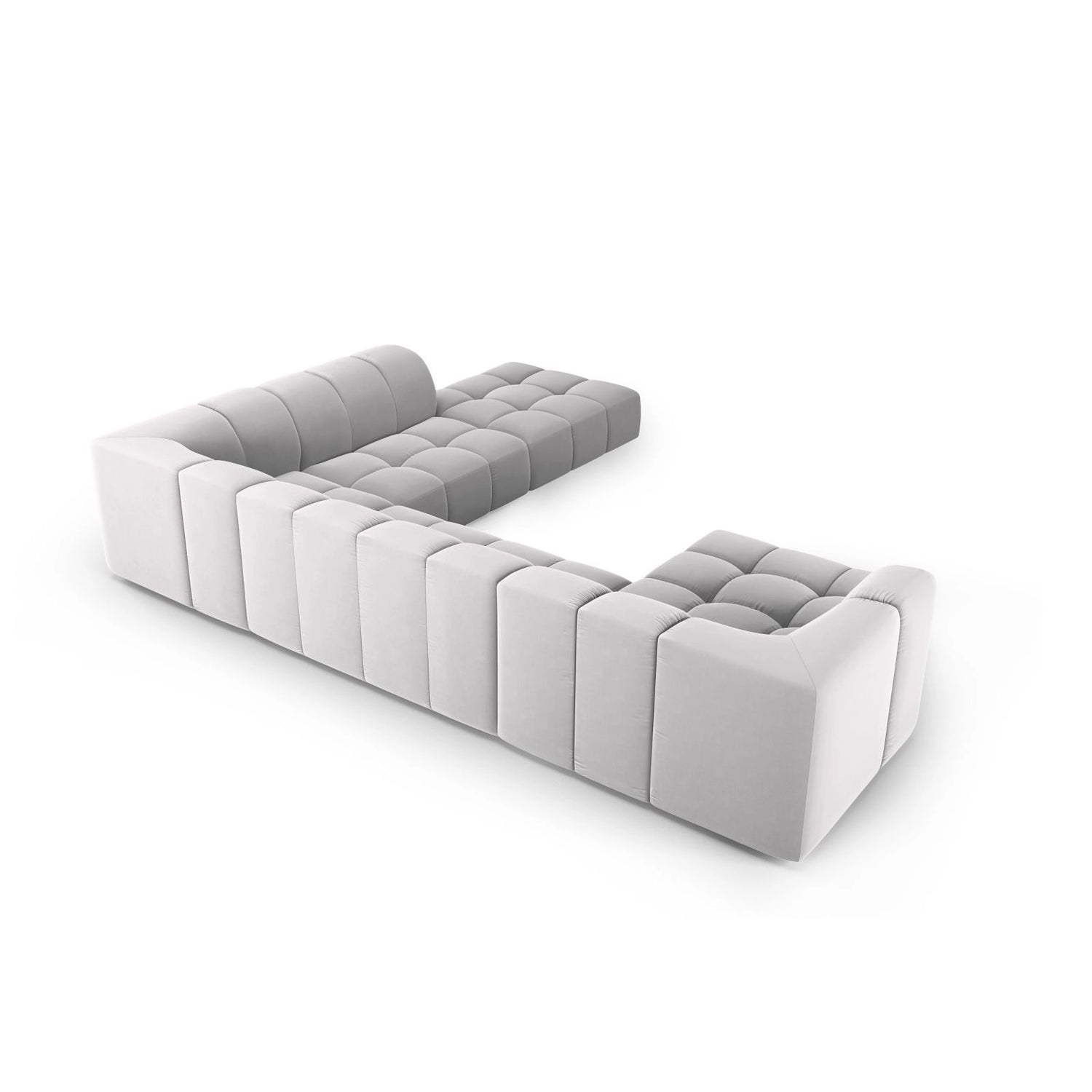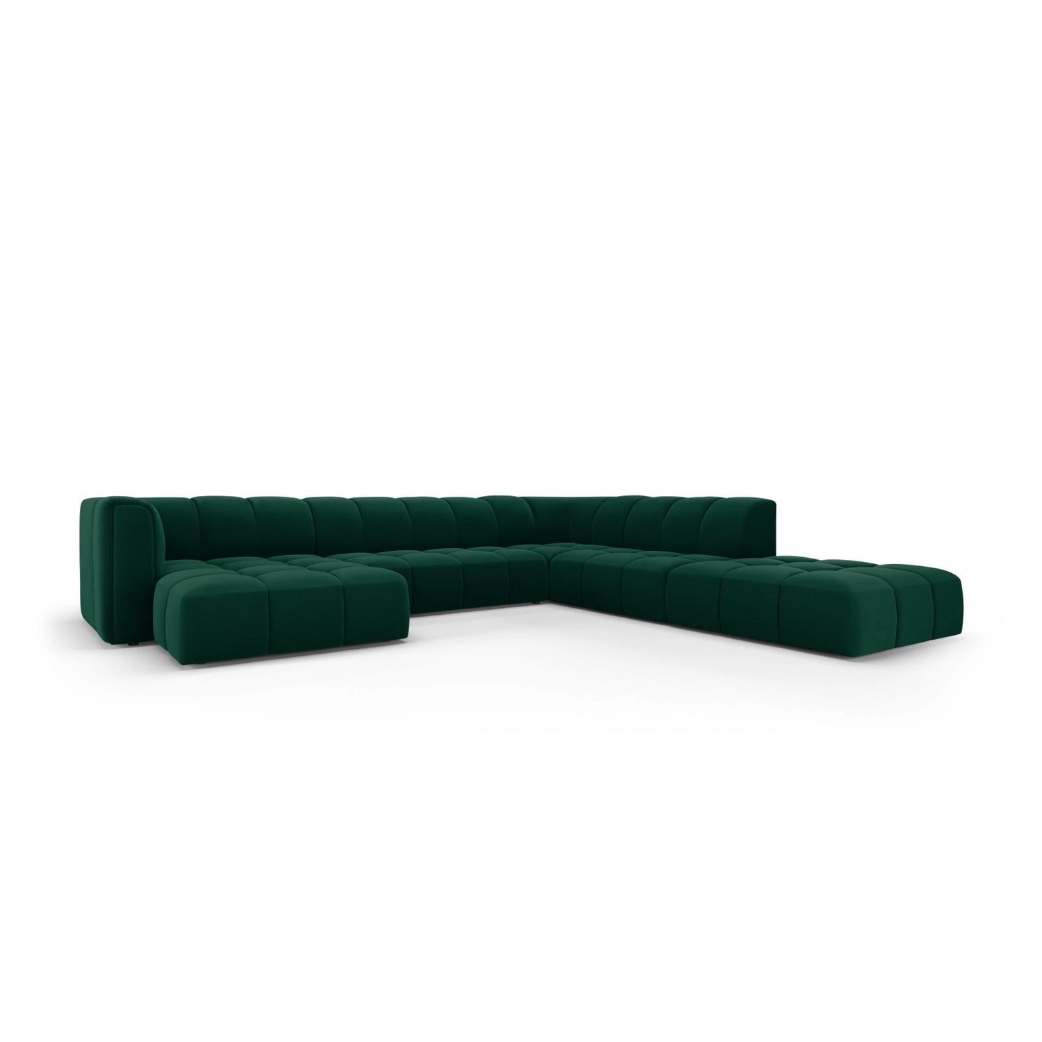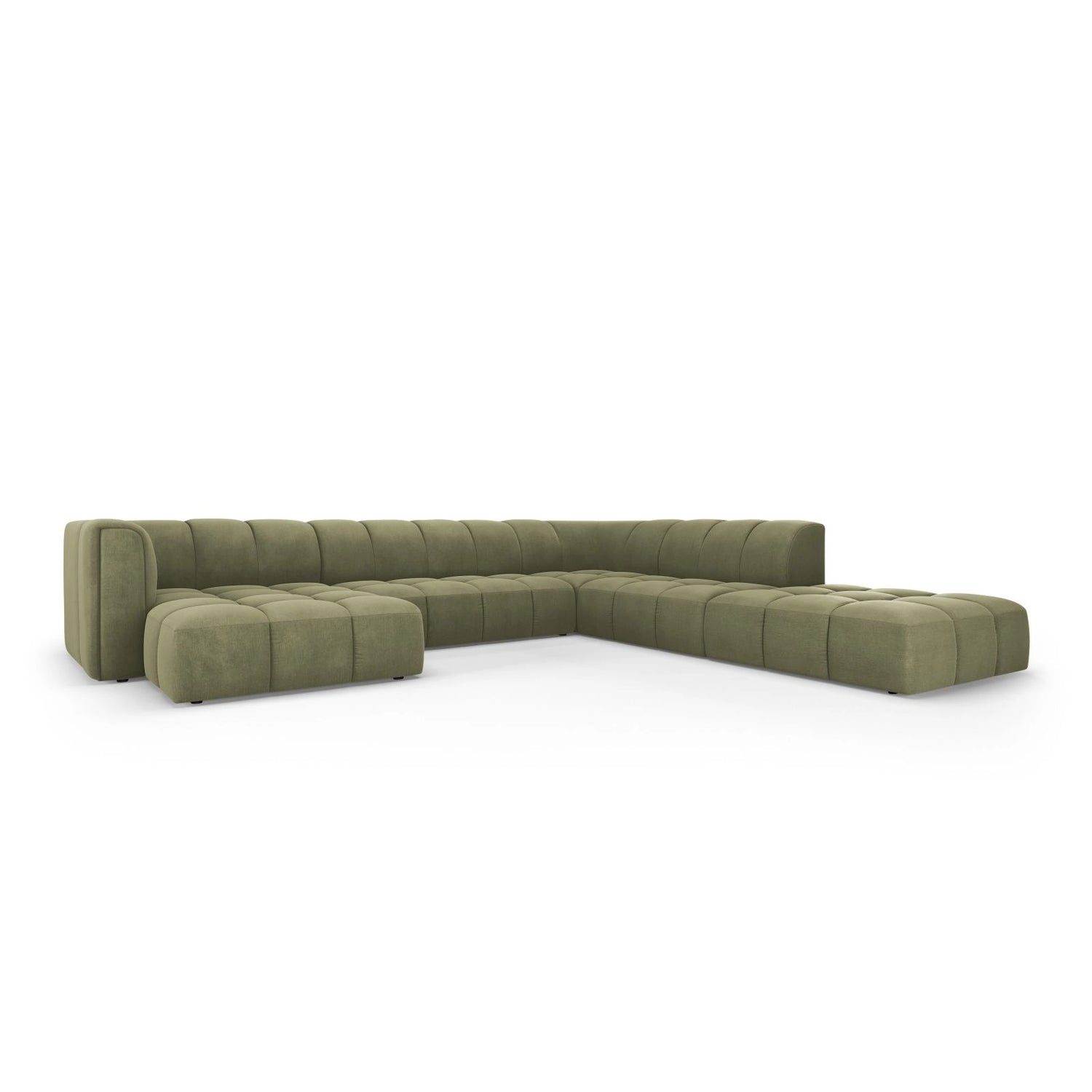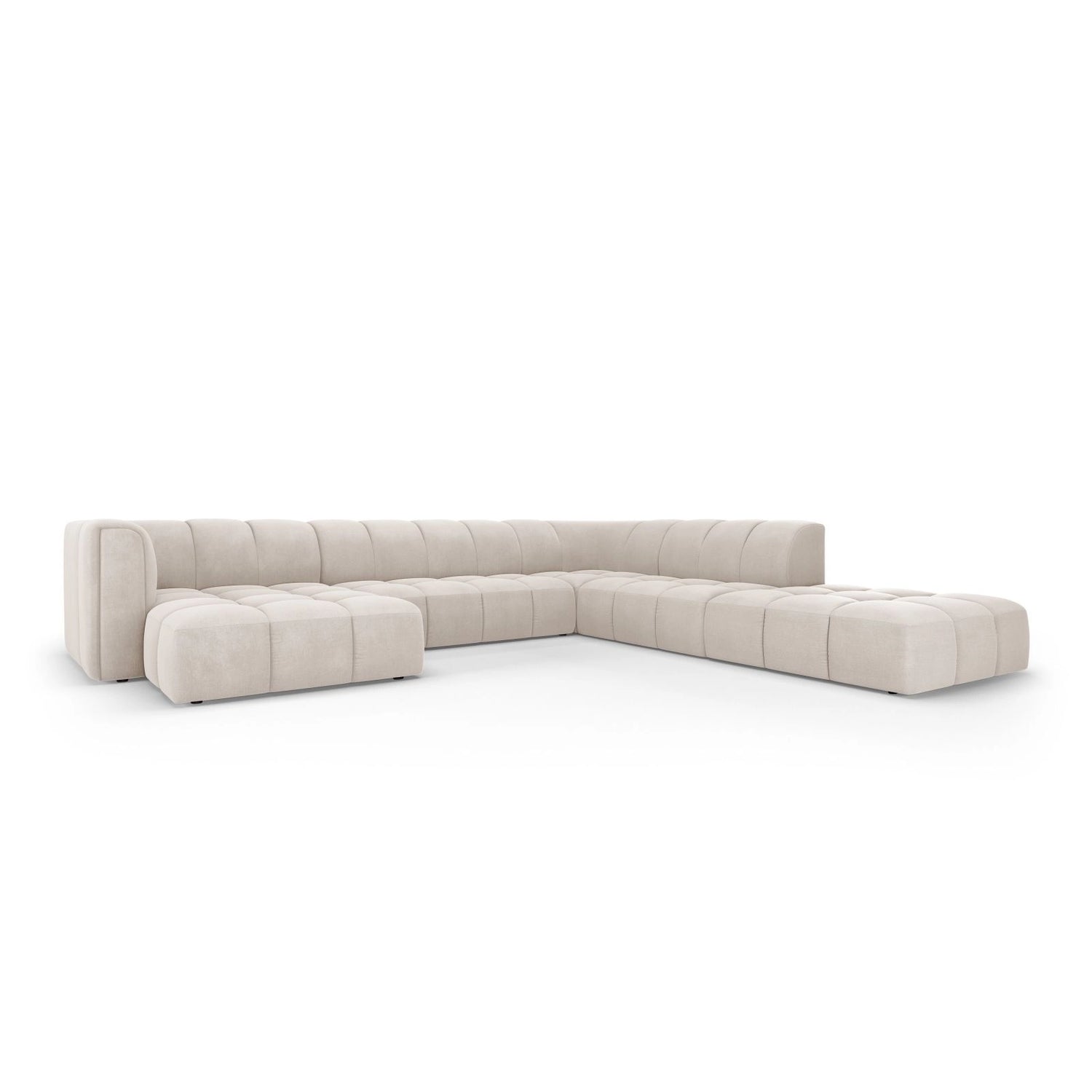 Moritz 7-Sitzer Panorama Ecksofa, Rechte Seite, aus Samt oder Chenille, 329x276x70 cm - Chenille (Rebel 12), Königsblau // Beine Schwarzes Plastik ist auf Lager und wird versandt, sobald es wieder verfügbar ist